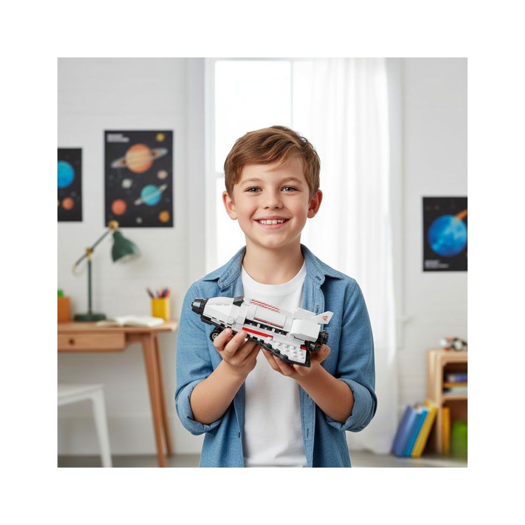 Stavebnice z vesmírného prostředí nabízí hned tři stavebnice v jednom. Vyberte si jednu z možností, postavte ji, zbourejte a stavte znovu! Spousta zábavy v jedné krabici.