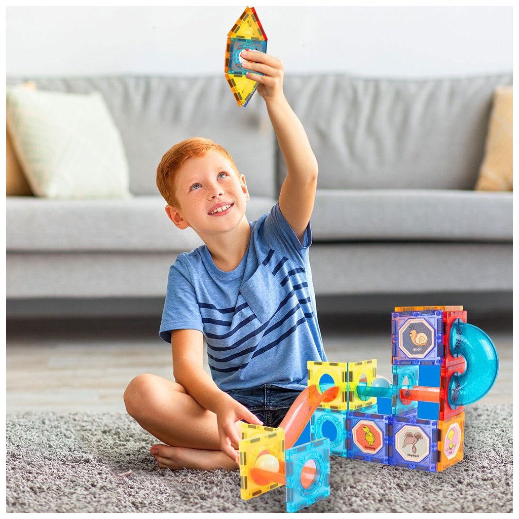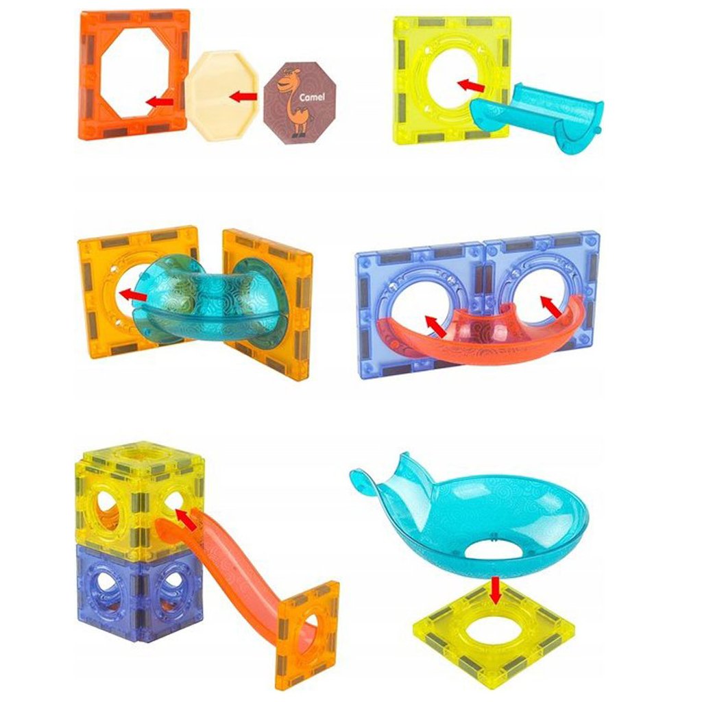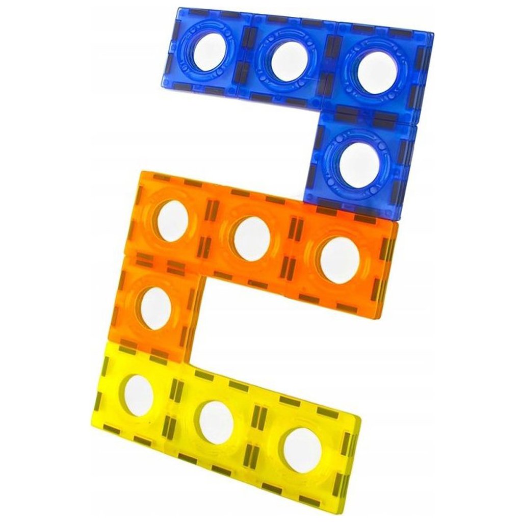 Díly lze pokládat naplocho ve formě 2D tvarů nebo prostorově 3D. Každý blok je snadno propojitelný, aby stavba i těch nejnáročnějších modelů byla čistým potěšením. Příjemné barvy a přiložené samolepky vybízejí děti ke hře. Všechny prvky jsou vyrobeny z odolného plastu. Stavění rozvíjí jemnou motoriku a trénuje soustředění a trpělivost dítěte.