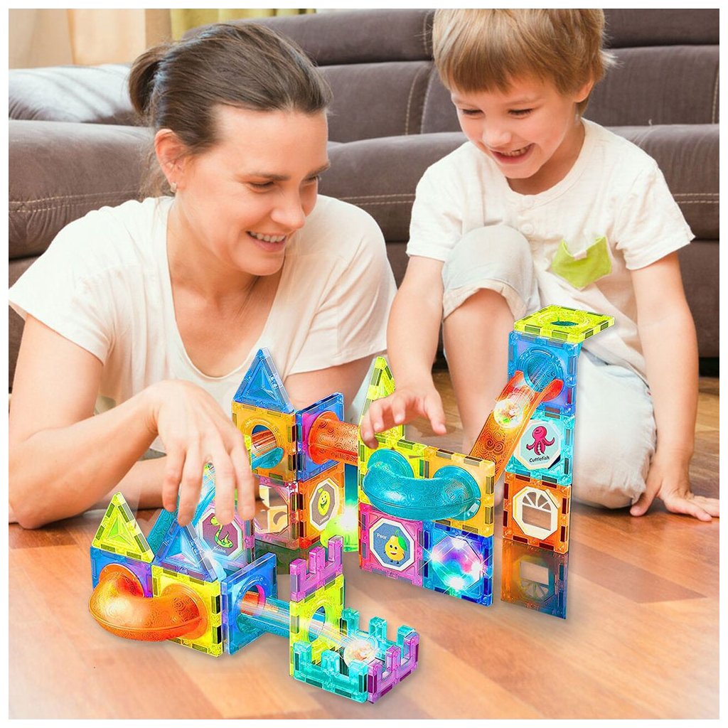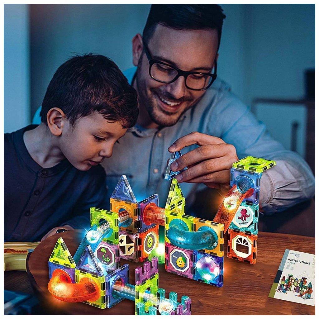 Tato magnetická světelná stavebnice nabízí zábavu pro děti i dospělé, kteří rádi tráví čas konstruováním a hraním si. Sada obsahuje barevné ve tmě svítící dílky, ze kterých lze postavit nejrůznější útvary. Můžeš si sestavit objekty podle vyobrazení na krabici nebo si vytvořit své vlastní. Hračka na baterie, se světlem.