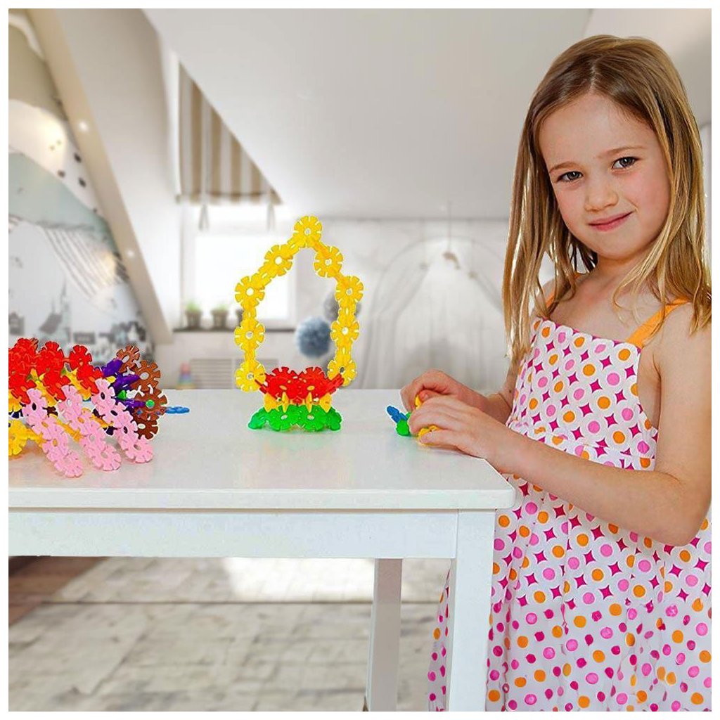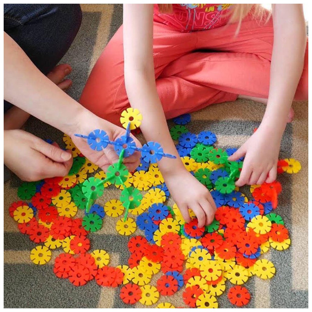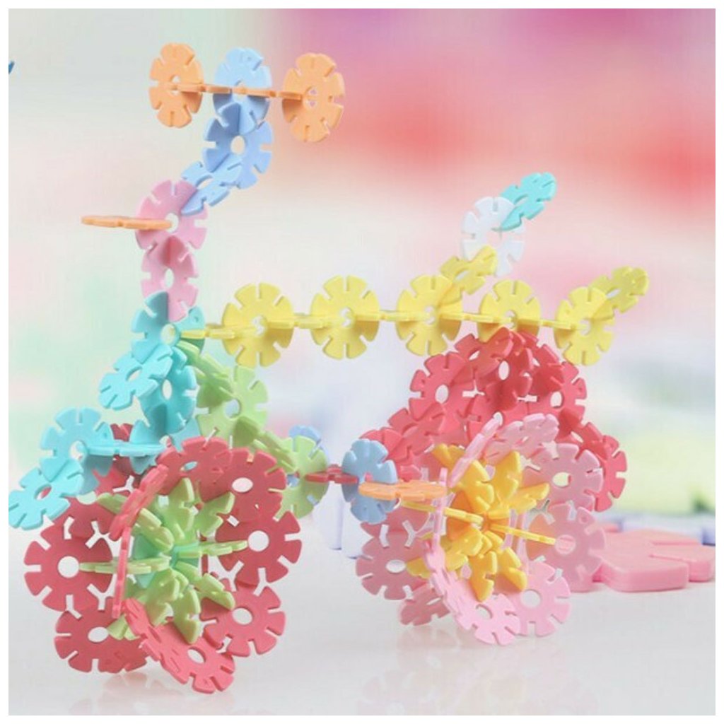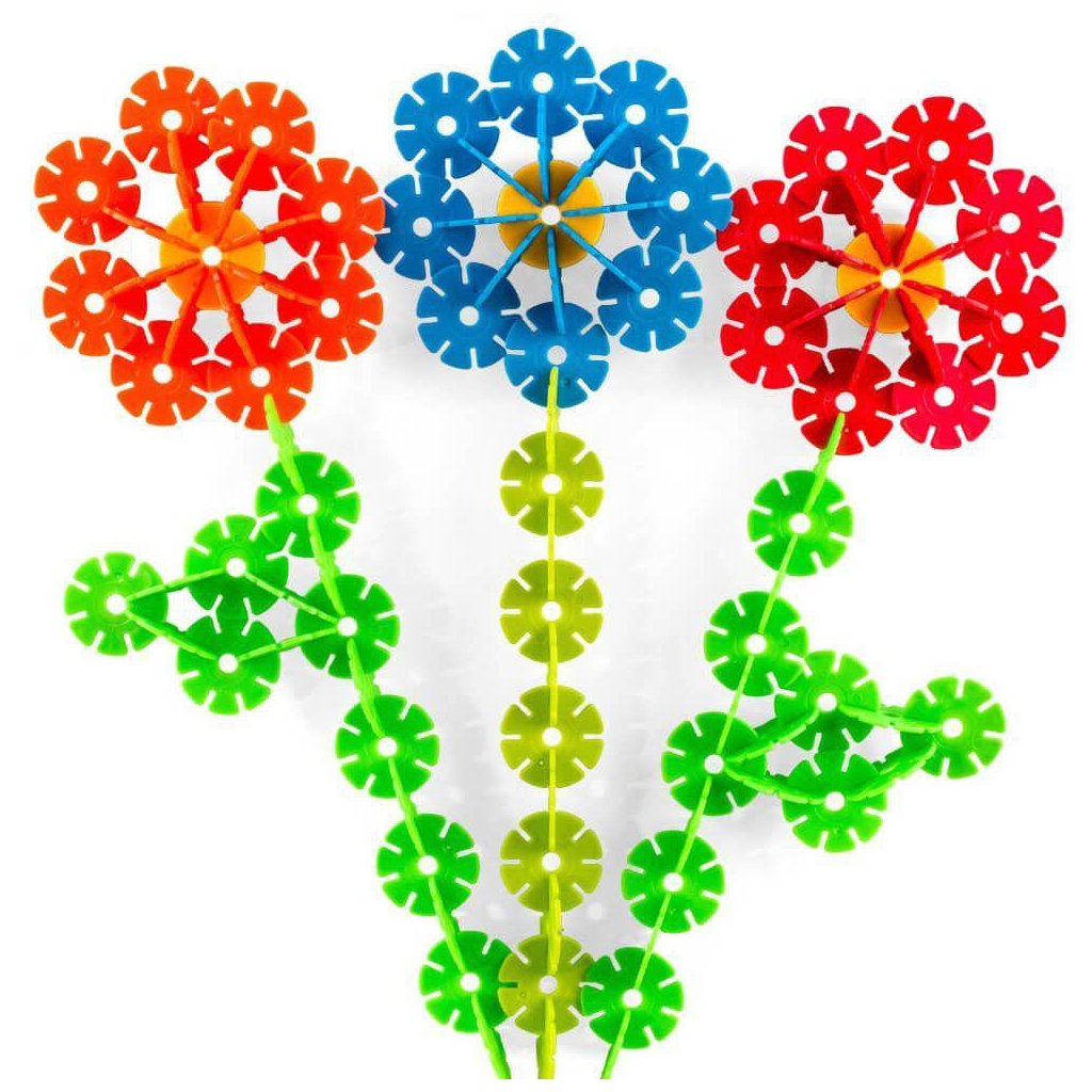 Tato stavebnice obsahuje malé dílky, které jsou ve tvaru vloček a různě se na sebe napojují a spojují. Díky tomu, že jsou dílky různě barevné, můžete s dětmi trénovat barvy. Vhodné pro děti od 3 let.