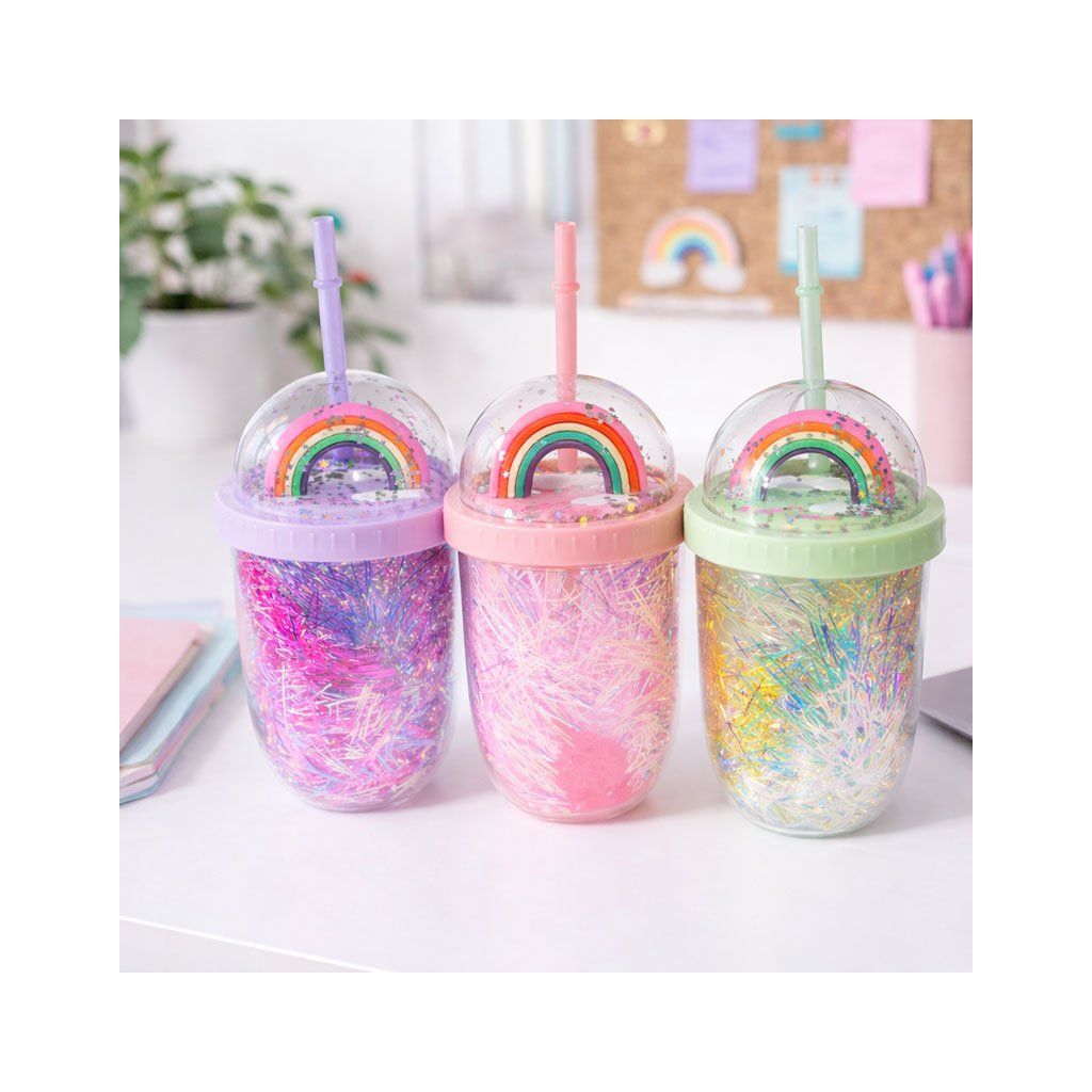 Stylový a hravý kelímek, který si děti okamžitě zamilují. Díky svému originálnímu designu s třpytkami a barevným motivem duhy promění každé pití v zábavu.