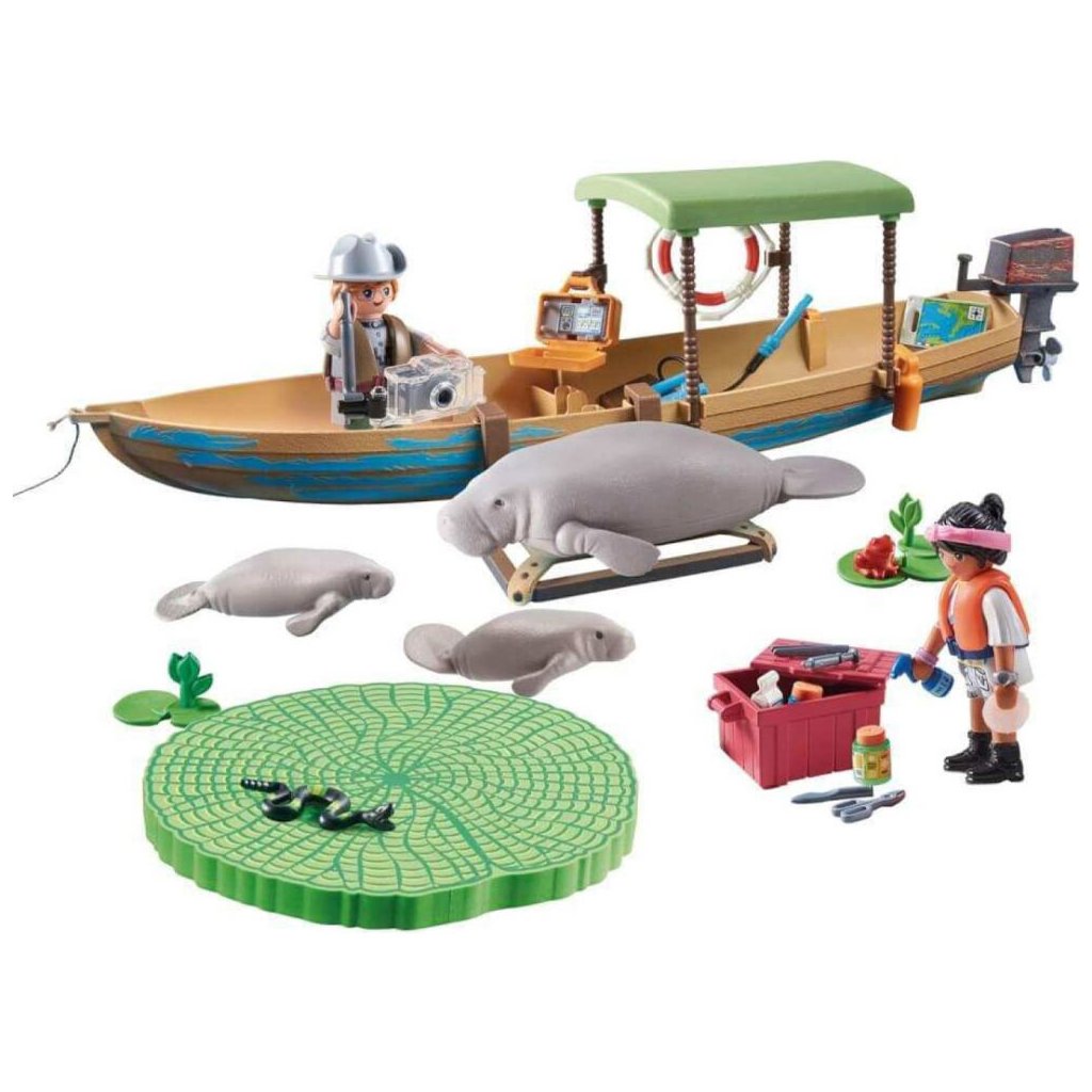 Sada obsahuje dvě figurky PLAYMOBIL Dr. Da Silva a Jamie Palmerovi, amazonský člun, kapustňák se dvěma mláďaty, podvodní kamera, měřicí přístroje, veterinární potřeby a mnoho dalších doplňků pro vzrušující amazonská dobrodružství.