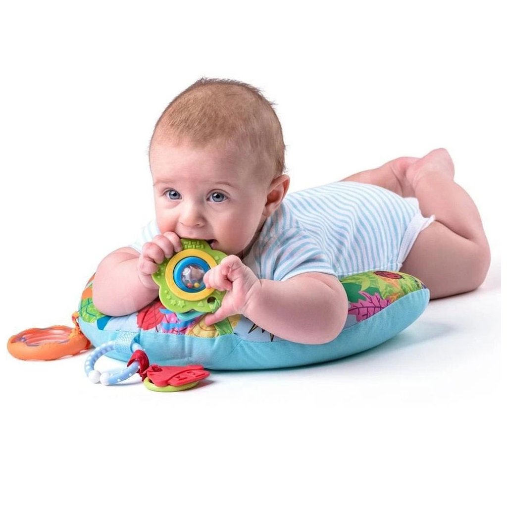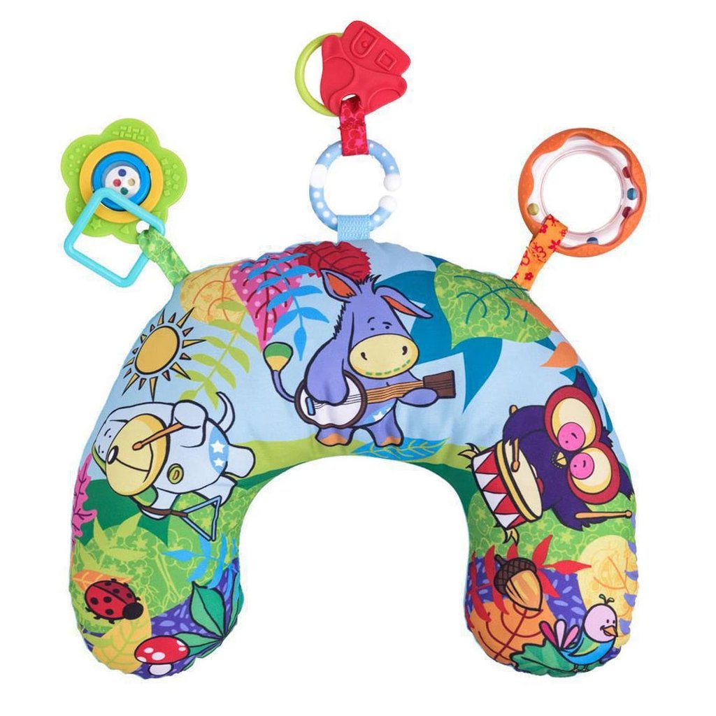 Polštářek podpírá dítě při ´´pasení koníčků´´. Poskytuje mu oporu a současně nabízí herní prvky jako jsou kousátka a chrastítka, která jsou odnímatelná pro možnost omytí.