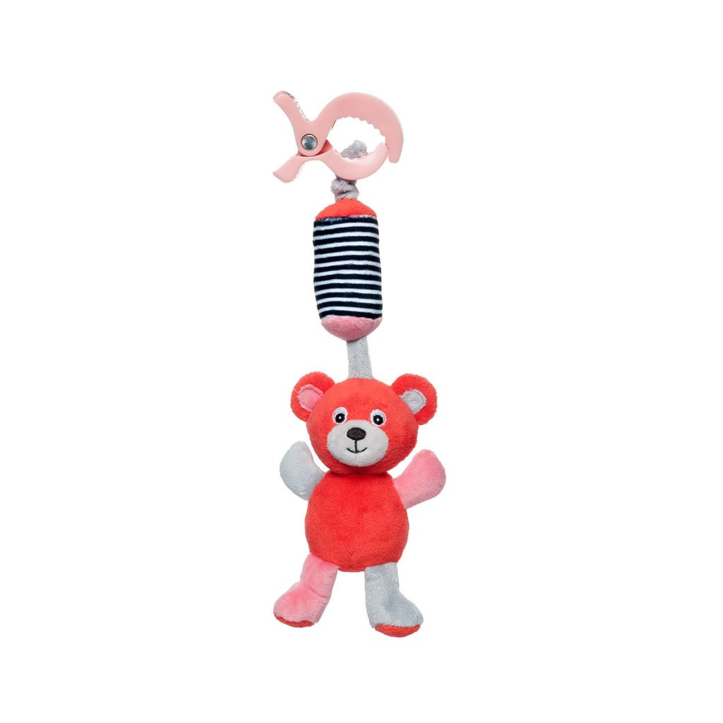 Plyšová hračka s rolničkou a klipem na zavěšení z kolekce MEDVÍDCI.