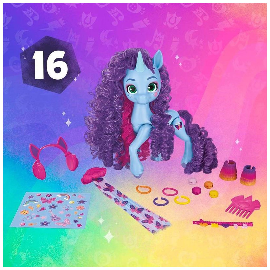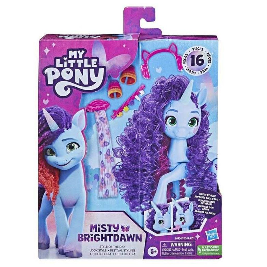 Přizpůsobte si rockové účesy, úžasné outfity a zábavné doplňky s My Little Pony Style! Děti mohou poníkovi upravit hřívu a ocas pomocí prodloužování „vlasů“ s kořínky. Sponkami lze princezně ozdobit její outfit. Balení obsahuje spoustu doplňků.