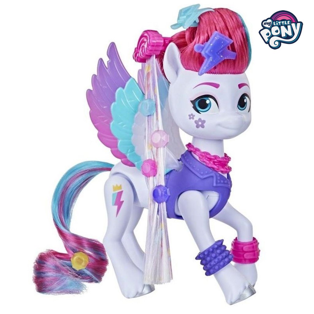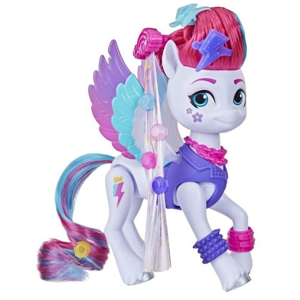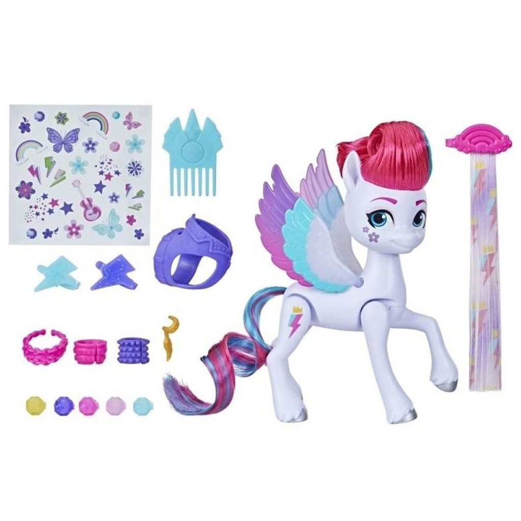 Přizpůsobte si rockové účesy, úžasné outfity a zábavné doplňky s My Little Pony Style! Děti mohou poníkovi upravit hřívu a ocas pomocí prodloužování „vlasů“ s kořínky. Sponkami lze princezně ozdobit její outfit. Balení obsahuje spoustu doplňků.