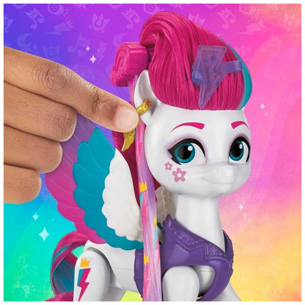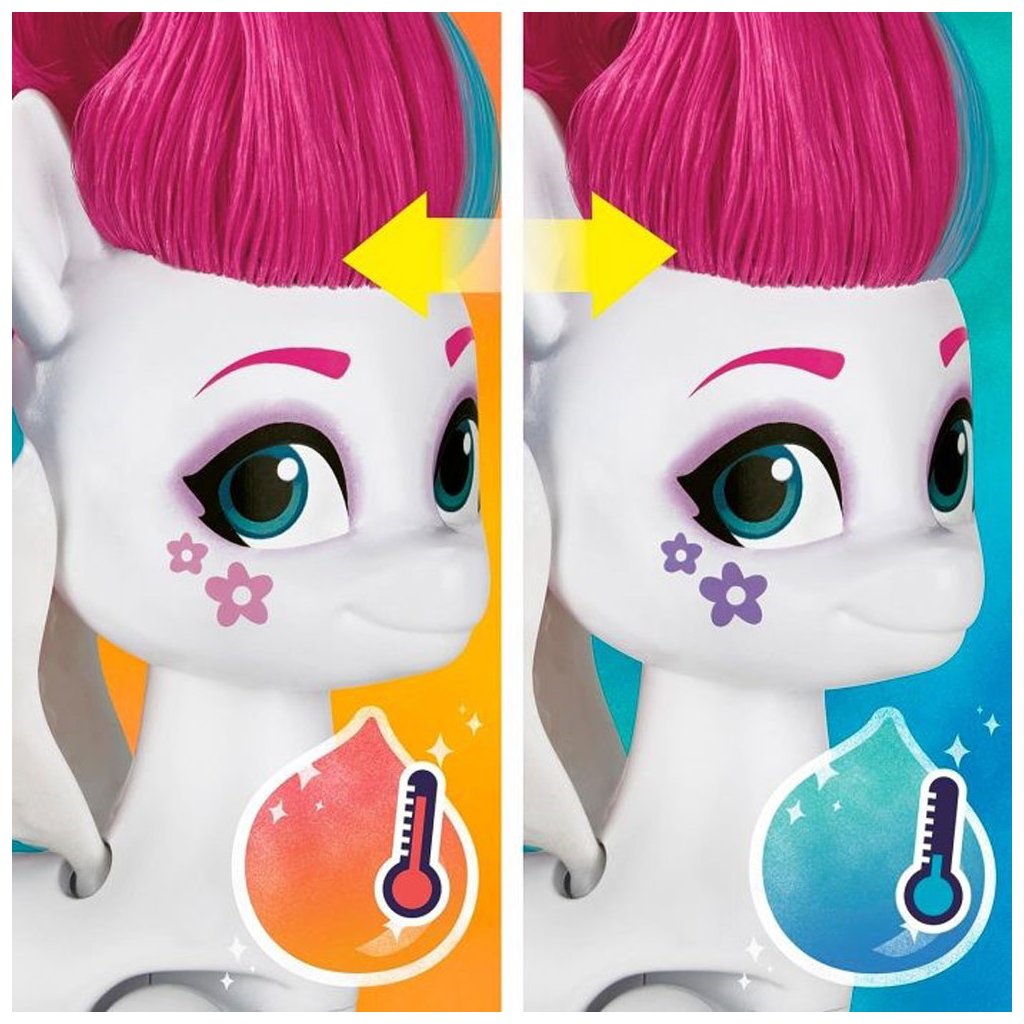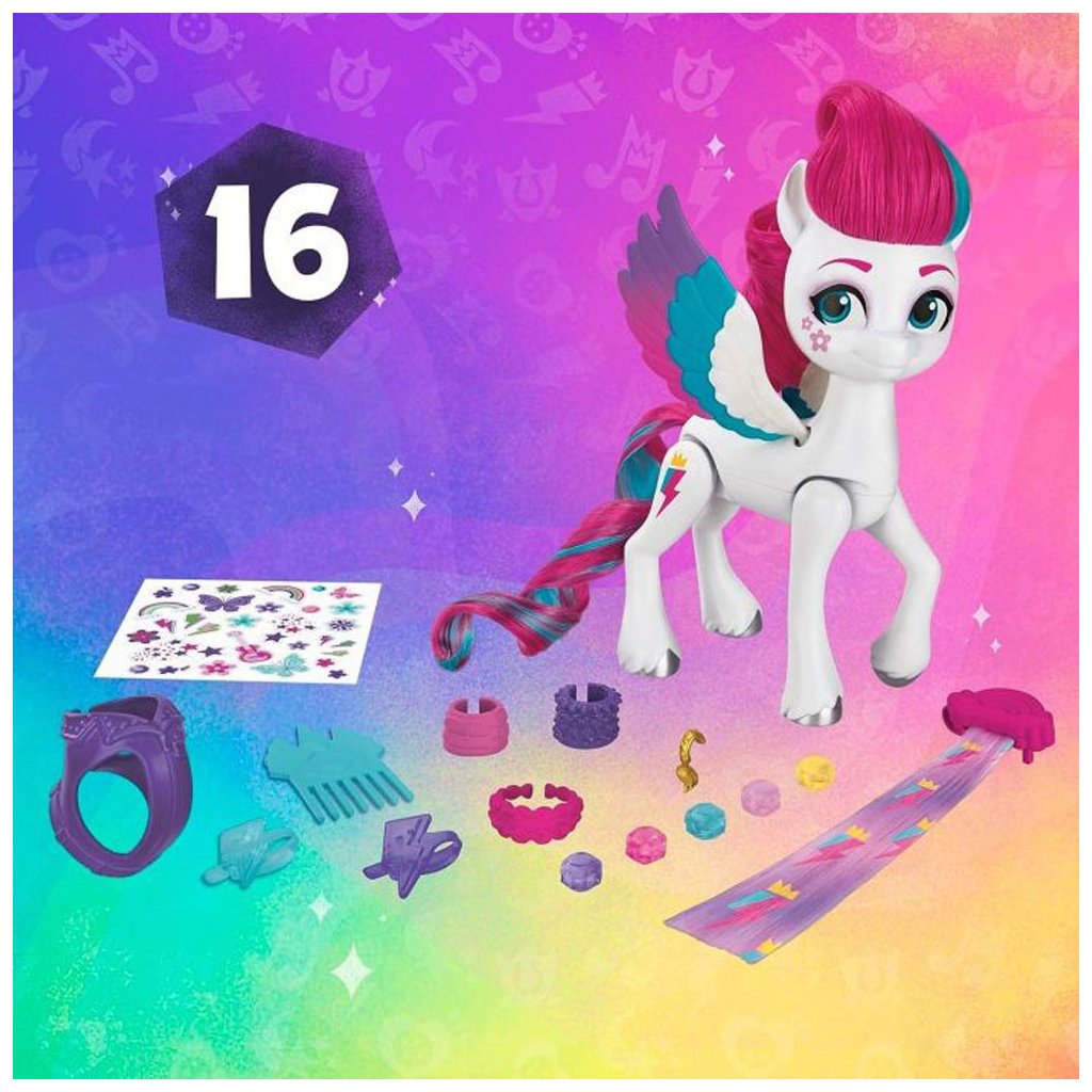 Přizpůsobte si rockové účesy, úžasné outfity a zábavné doplňky s My Little Pony Style! Děti mohou poníkovi upravit hřívu a ocas pomocí prodloužování „vlasů“ s kořínky. Sponkami lze princezně ozdobit její outfit. Balení obsahuje spoustu doplňků.