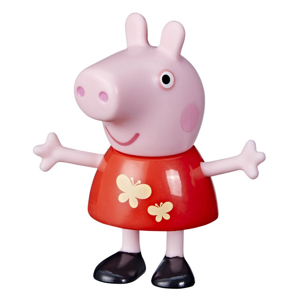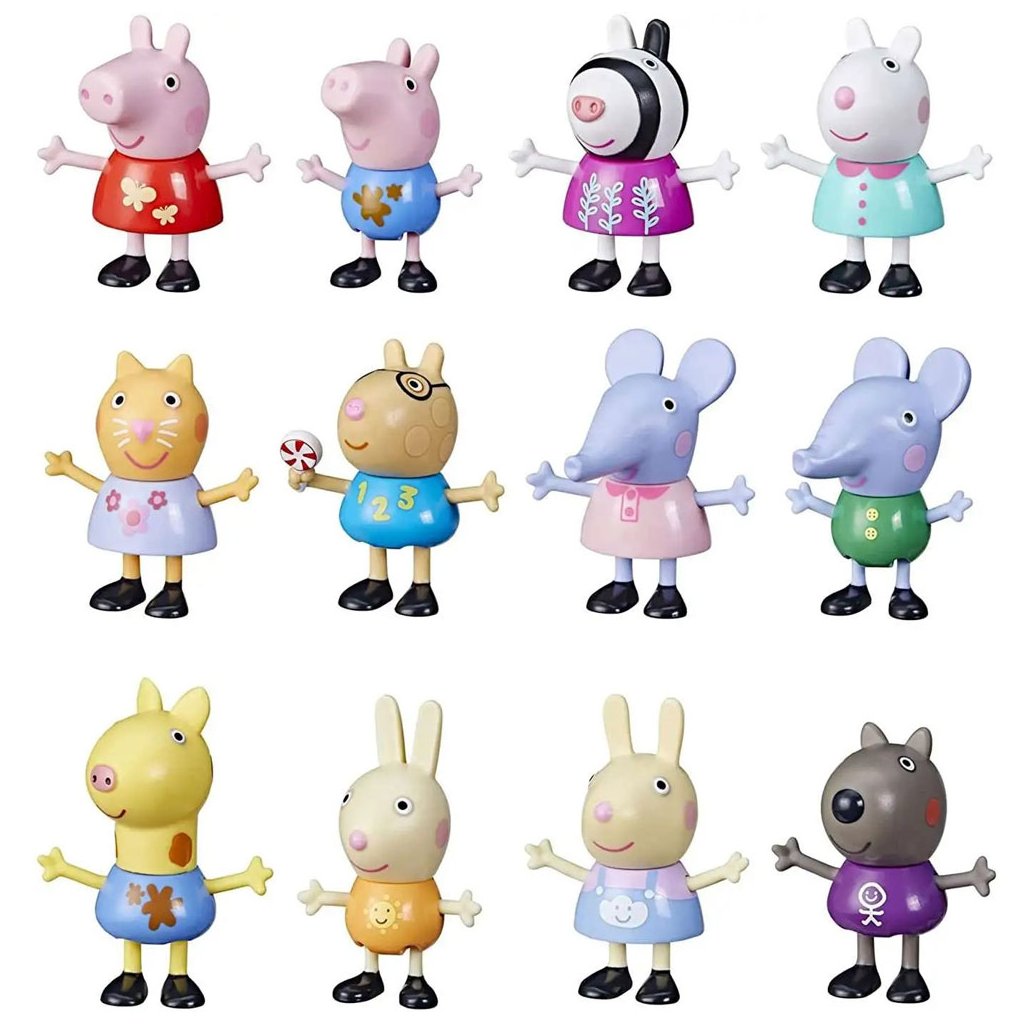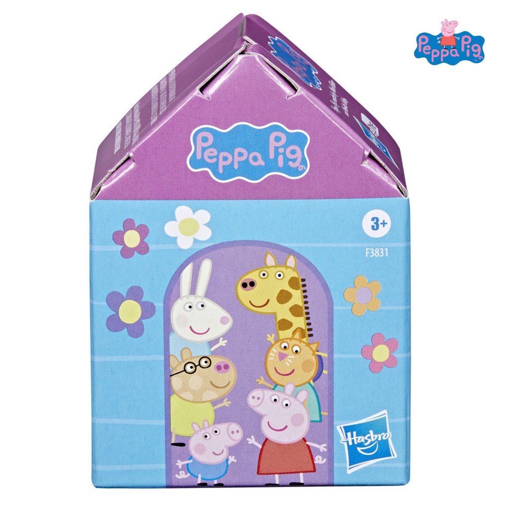 Peppa Pig a kamarádi v milé krabičce ve tvaru domečku. Každá krabička obsahuje jednu z 12 různých figurek, včetně Peppy prasátka, jejího bratra George, kočičky Candy, psa Dannyho, slona Emily a dalších.