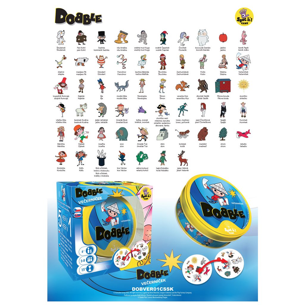Neexistuje snad nikdo, kdo by neměl rád oblíbený dětský pořad Večerníček. Již přes půl století baví malé i velké diváky u nás i na Slovensku. Připomeňte si společně s celou vaší rodinou oblíbené postavičky z pohádek a užijte si tu nejlepší postřehovou zábavu. Bob a Bobek, loupežník Rumcajs, Ája a maxipes Fík, Edudant a Francimor a mnoho dalších oblíbených postav z Večerníčků, jak je znáte.