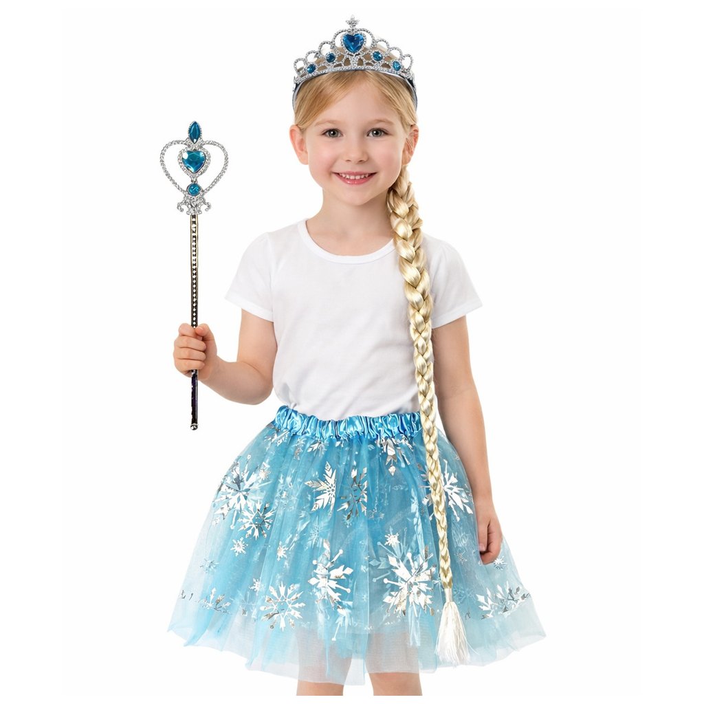Obsah balení: sukně, cop, hůlka, korunka