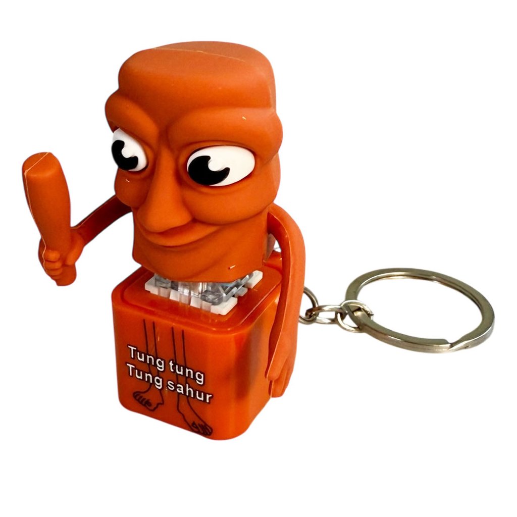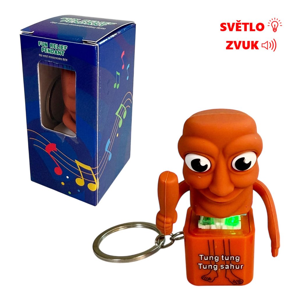 Vneste hravost i trochu příběhu ke svým klíčům nebo batohu díky tomuto originálnímu přívěsku. Přívěsek po stisknutí hraje melodie TungTungTung Sahur a svítí. Úžasný přívěsek na klíče je velký 6 centimetrů a má k sobě na připnutí karabinku.