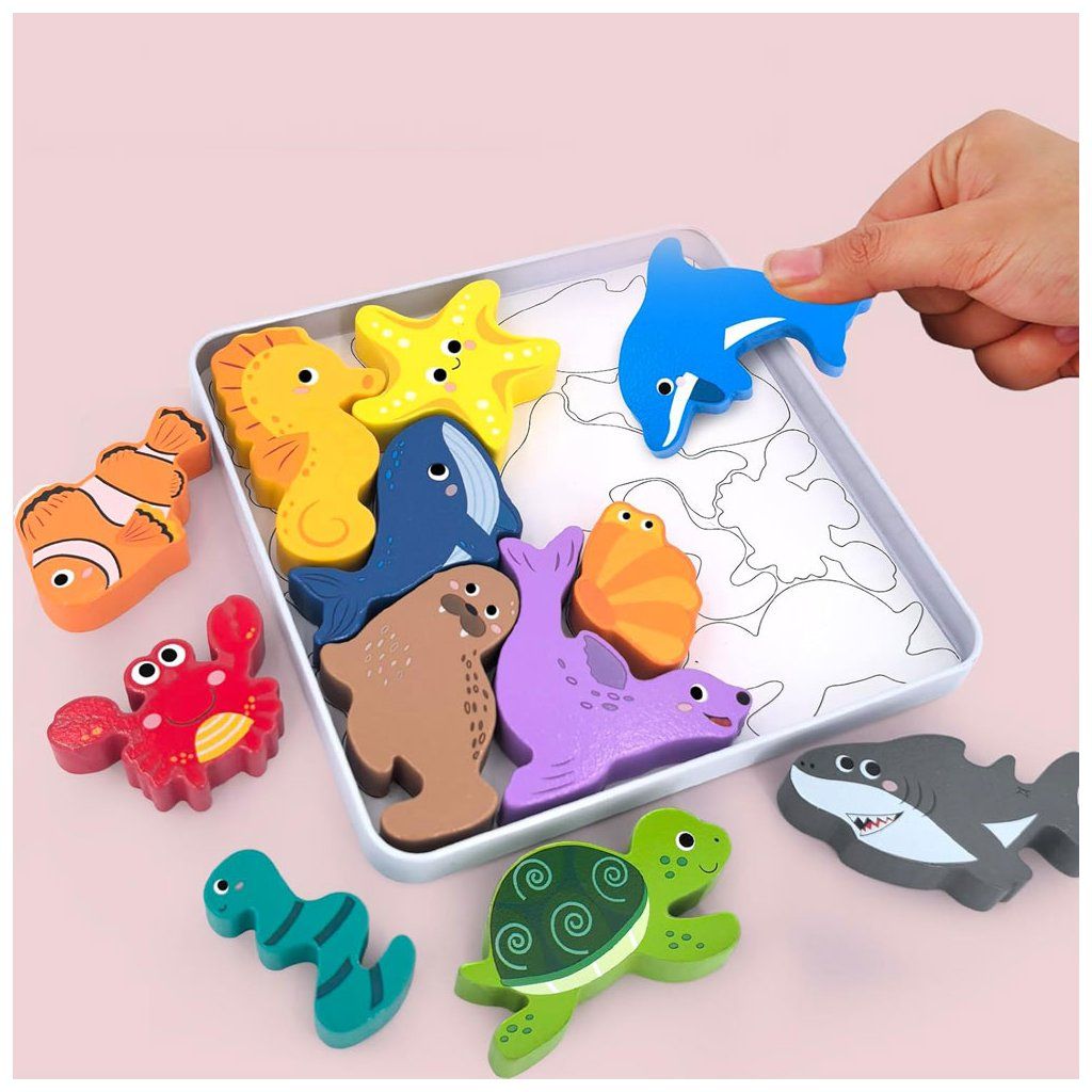 Dřevěné puzzle v praktické plechové krabičce je ideální zábava pro děti doma i na cestách. Díky kompaktnímu a plochému provedení se snadno vejde do batohu, kabelky nebo přihrádky v autě, takže ho můžete mít vždy po ruce.