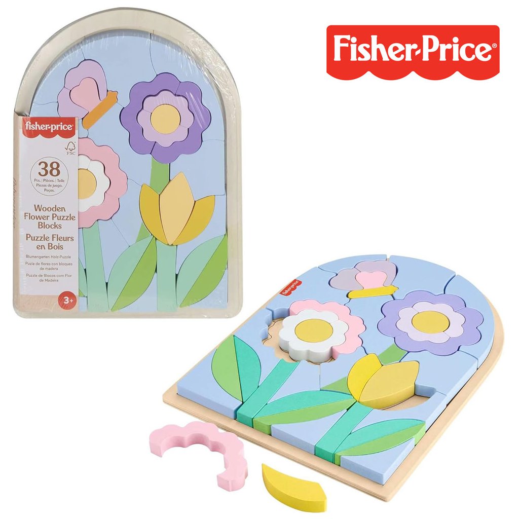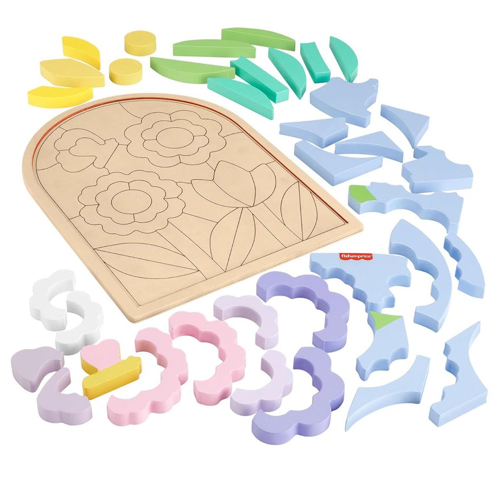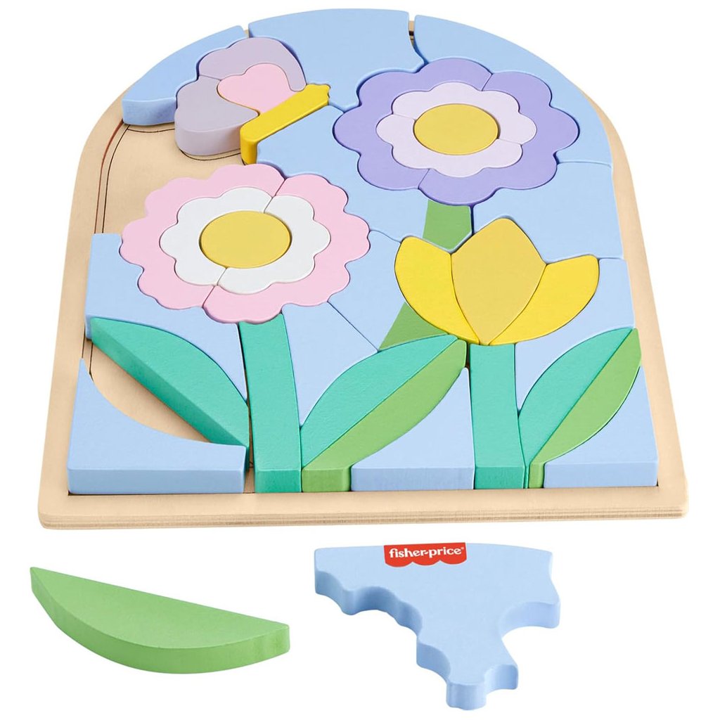 Fisher-Price Barevná skládačka Květiny s motýlem dřevěné puzzle 38 dílků (8507)