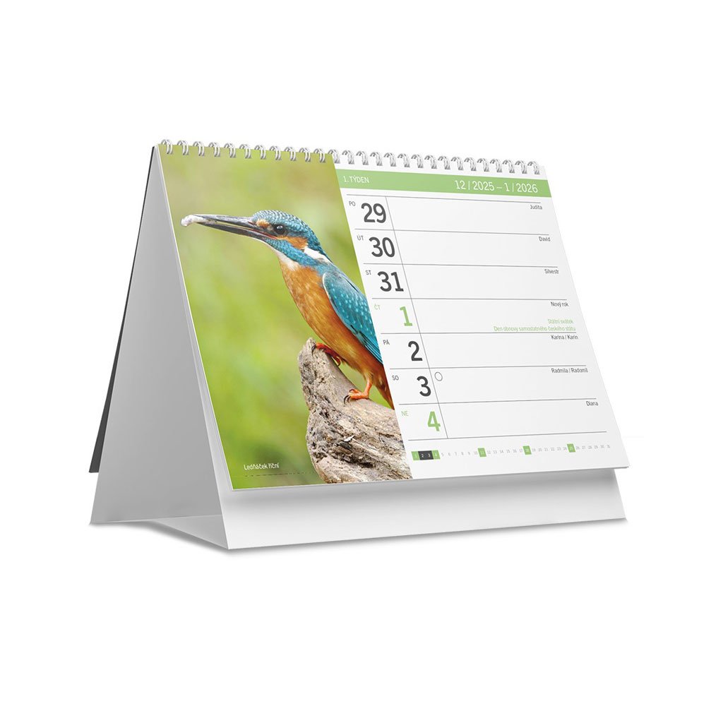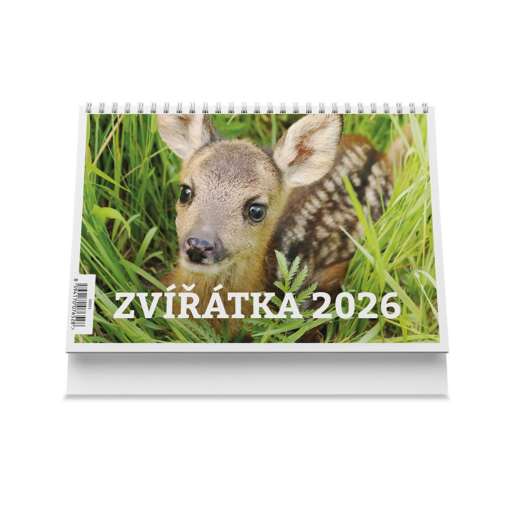 Užijte si rok 2026 ve společnosti krásných zvířat. Stolní kalendář Zvířátka vám každý týden představí novou fotografii – od roztomilého srnčete ukrytého v trávě po pestrobarevného ledňáčka říčního. Kalendář obsahuje přehledné týdenní kalendárium s českými jmény, státními svátky a prostorem pro poznámky. Kroužková vazba umožňuje snadné otáčení listů.