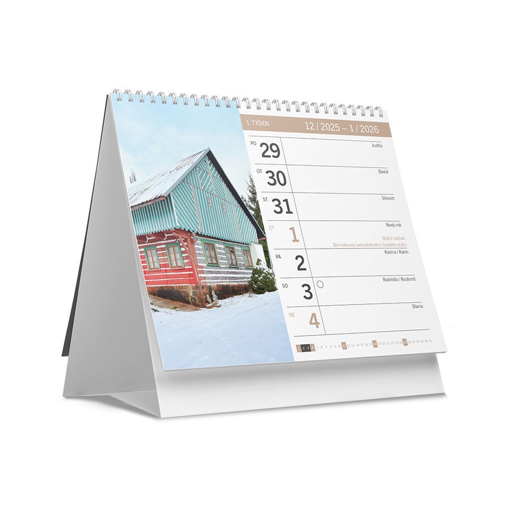 • Stolní týdenní kalendář 2026 – Chaty a chalupy
