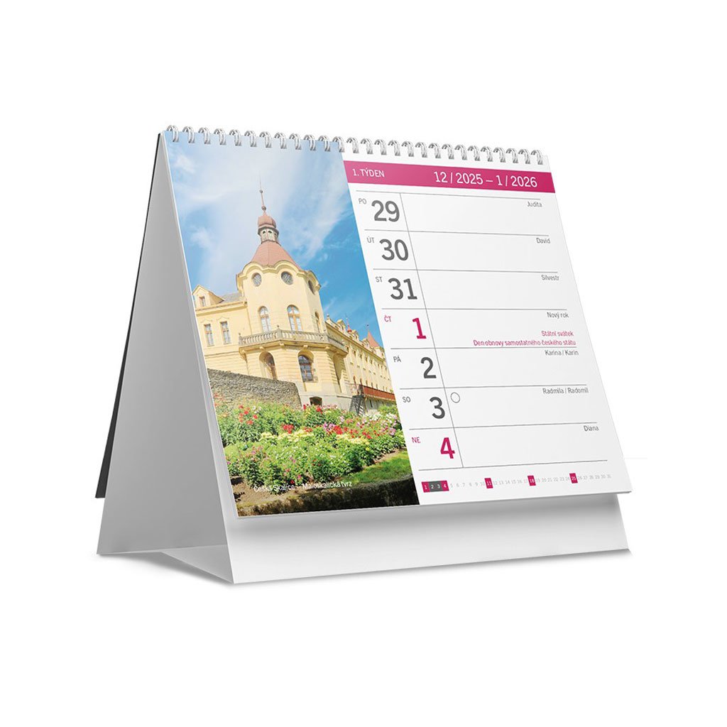 • Stolní týdenní kalendář 2026 – Hrady & Zámky