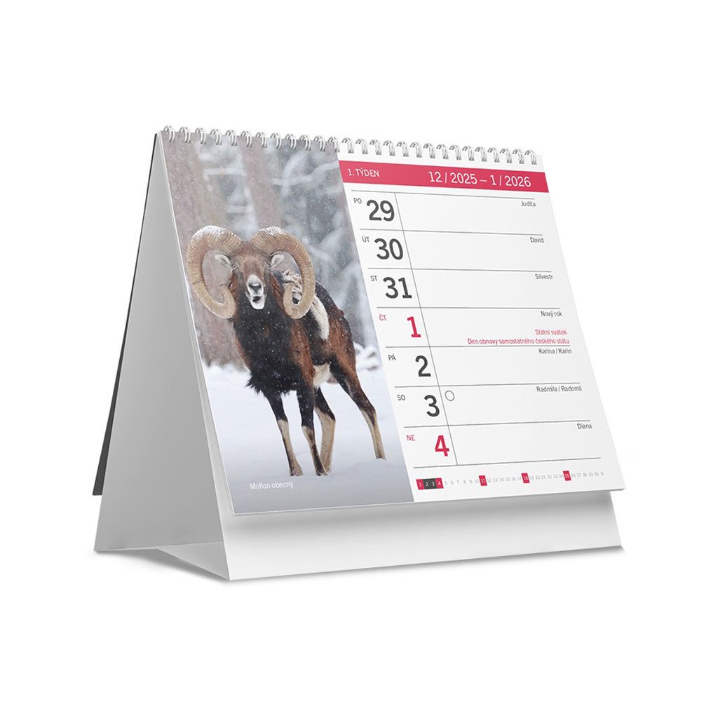 • Stolní týdenní kalendář 2026 s motivem zvířat