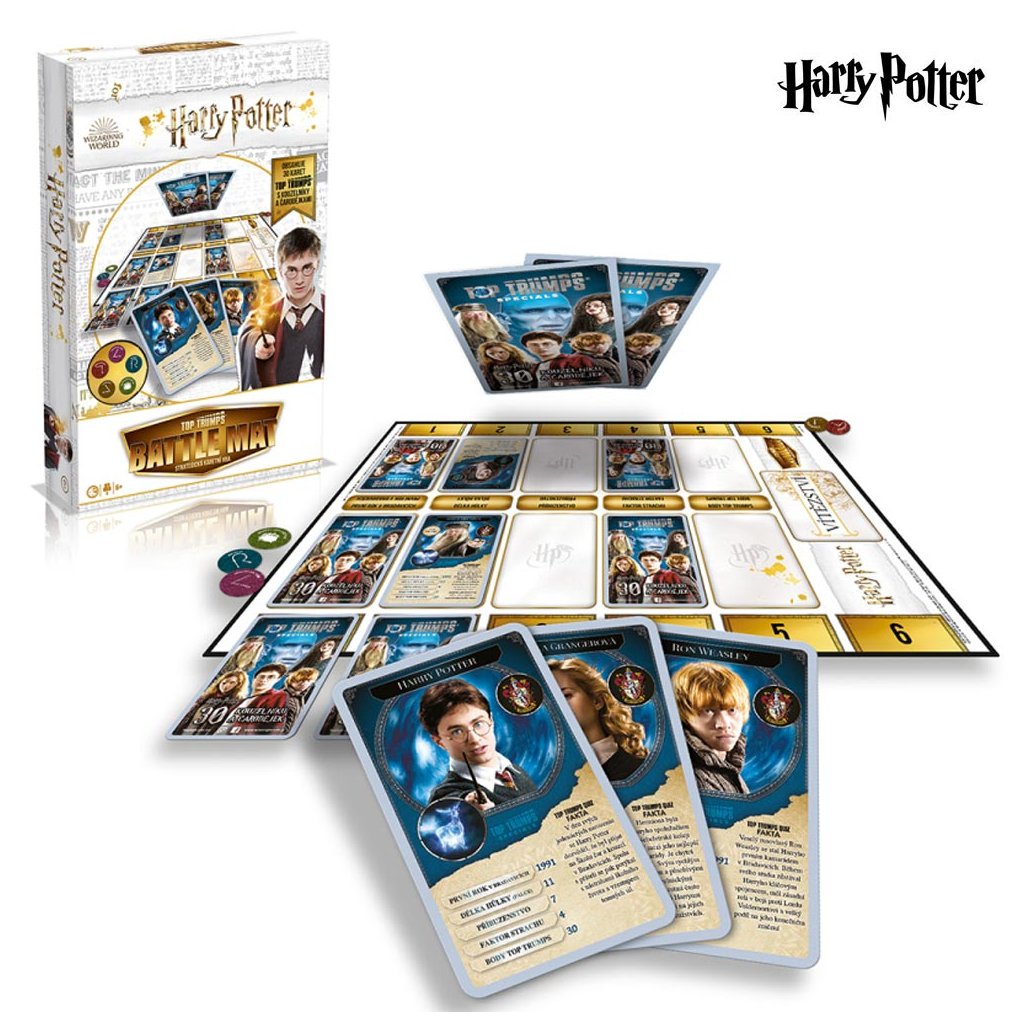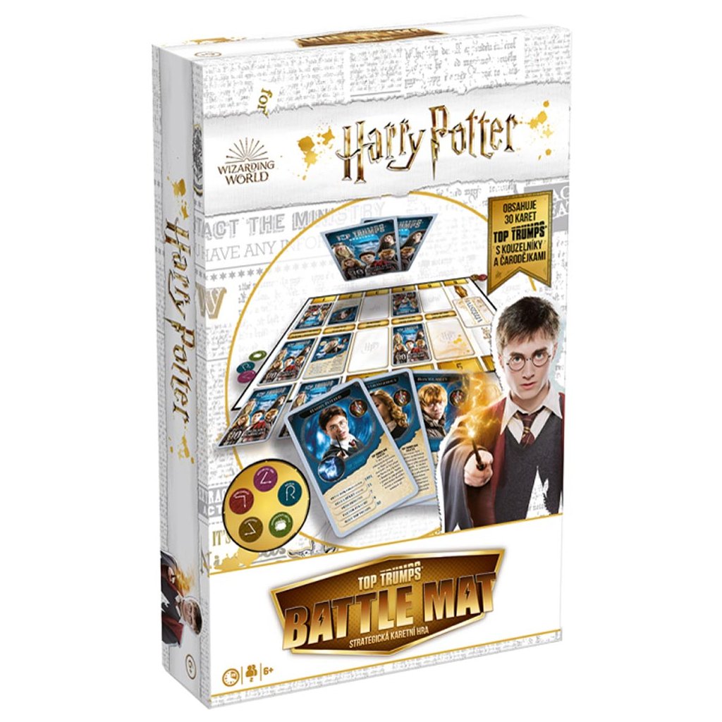 Top Trumps Battle Mat Harry Potter CZ – desková hra. Top Trumps Battle Mat je nový herní model oblíbené hry Top Trumps v edici deskové hry. Hra je kompletně v češtině. Hlavními hrdiny této edice strategické karetní hry je 30 čarodějek a čarodějů, které znáte ze světa Harryho Pottera.
