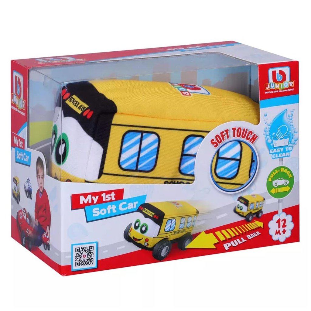 Měkká látková hračka s odjímatelným podvozkem. Autobus je velký 13 centimetrů.