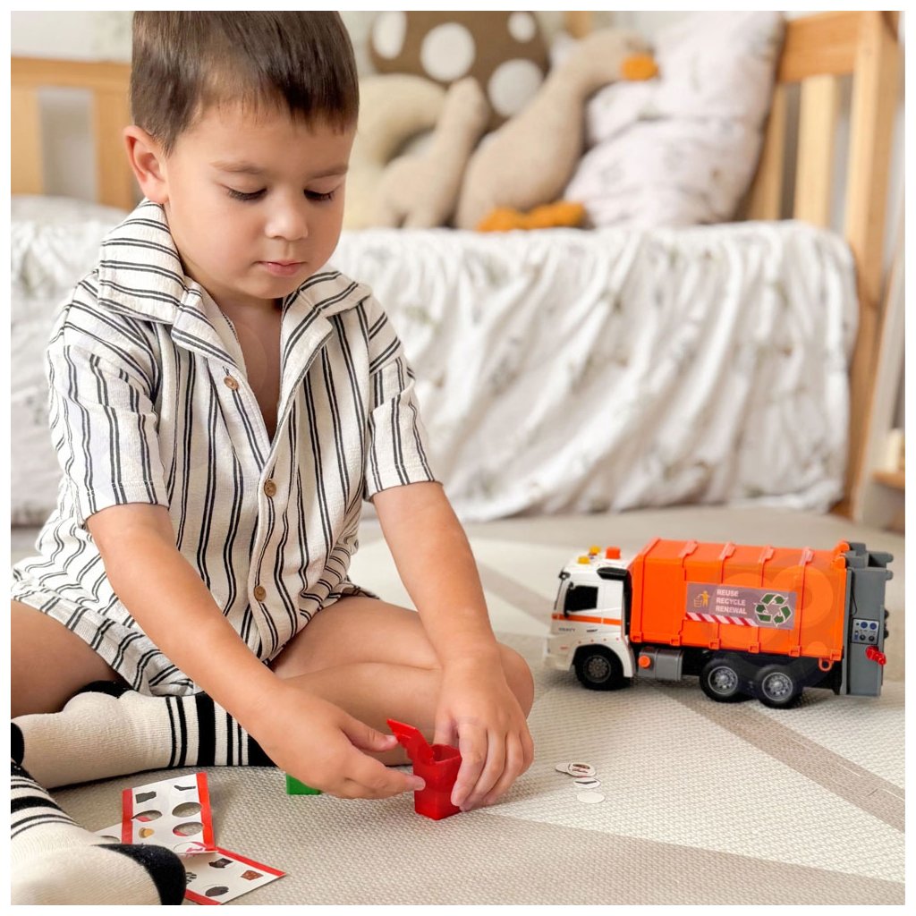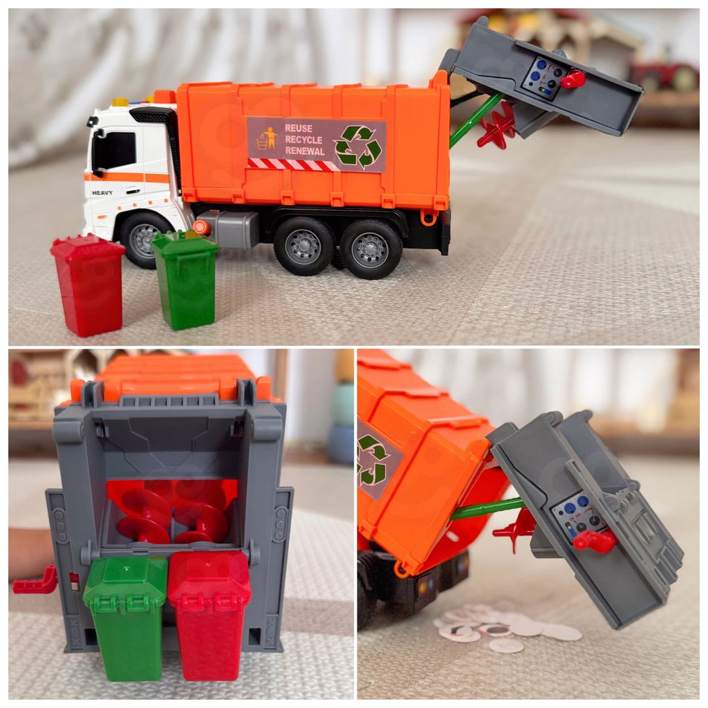 Co je na této hračce opravdu unikátní, je její vyklápěcí nákladový prostor. Tato funkce nabízí skvělou interaktivitu a možnosti pro hru - vaše dítě může nakládat a vykládat odpad ze dvou přiložených popelnic, což stimuluje jeho motorické dovednosti.