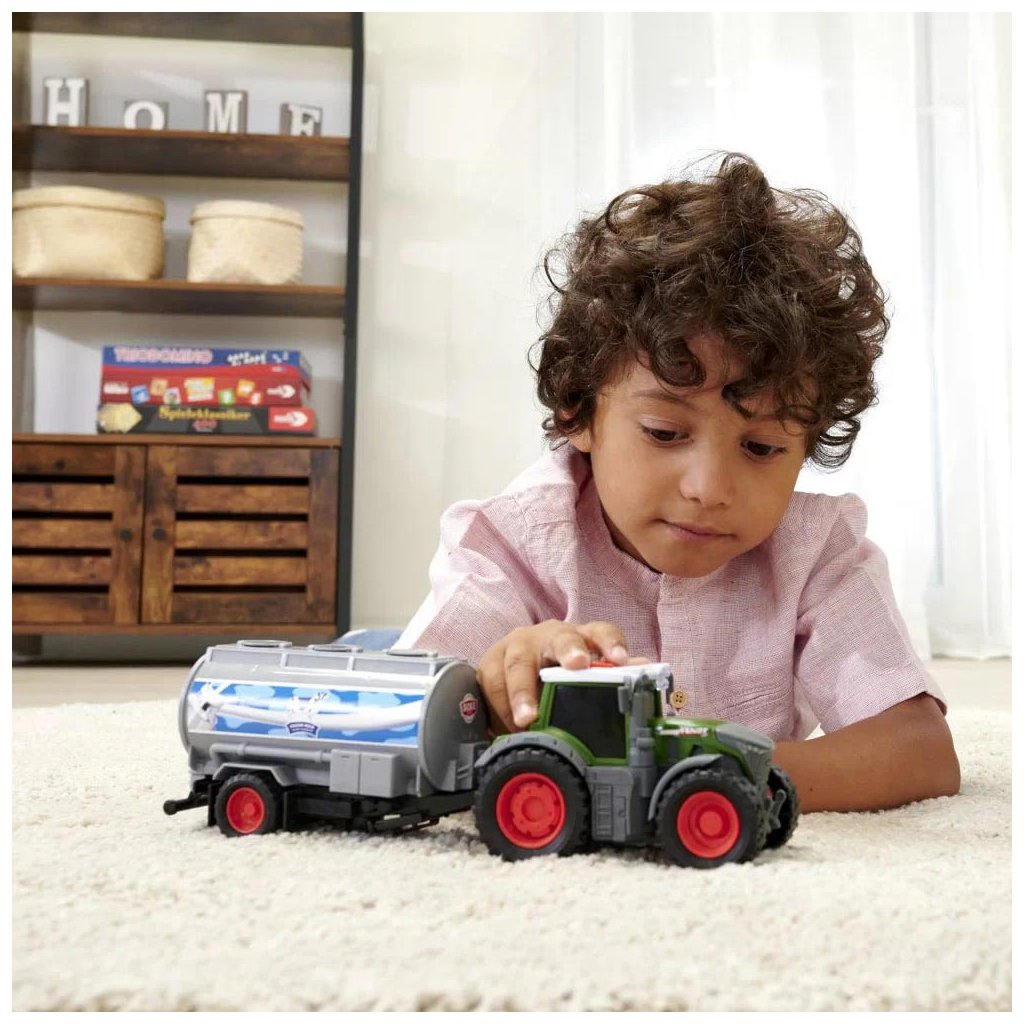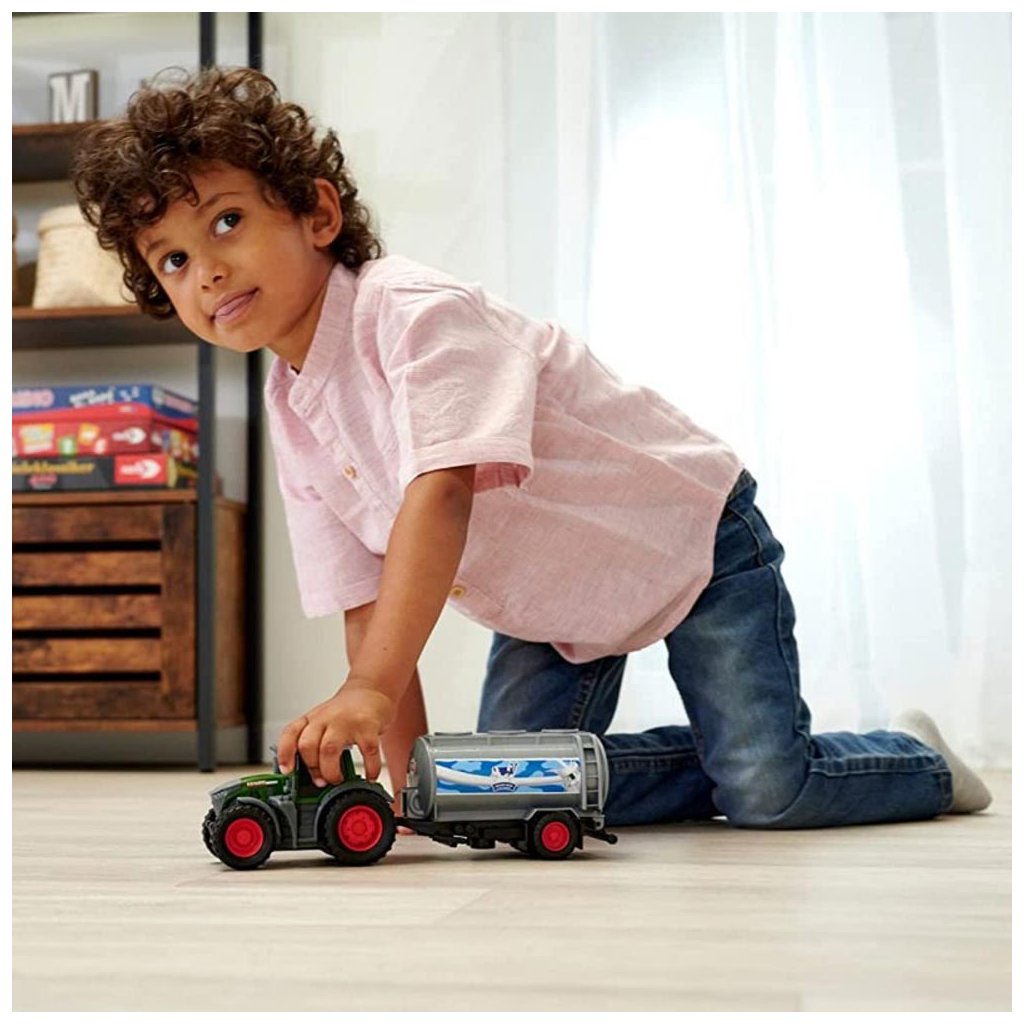 S mlékomatem Fendt od Dickie Toys! Přepravník mléka s oficiální licencí Fendt je ideálním dárkem pro malé fanoušky velkých a důležitých vozidel. Ať už doma nebo na zahradě, používání této hračky podněcuje představivost vašeho dítěte a zároveň trénuje motoriku jeho malých ručiček.