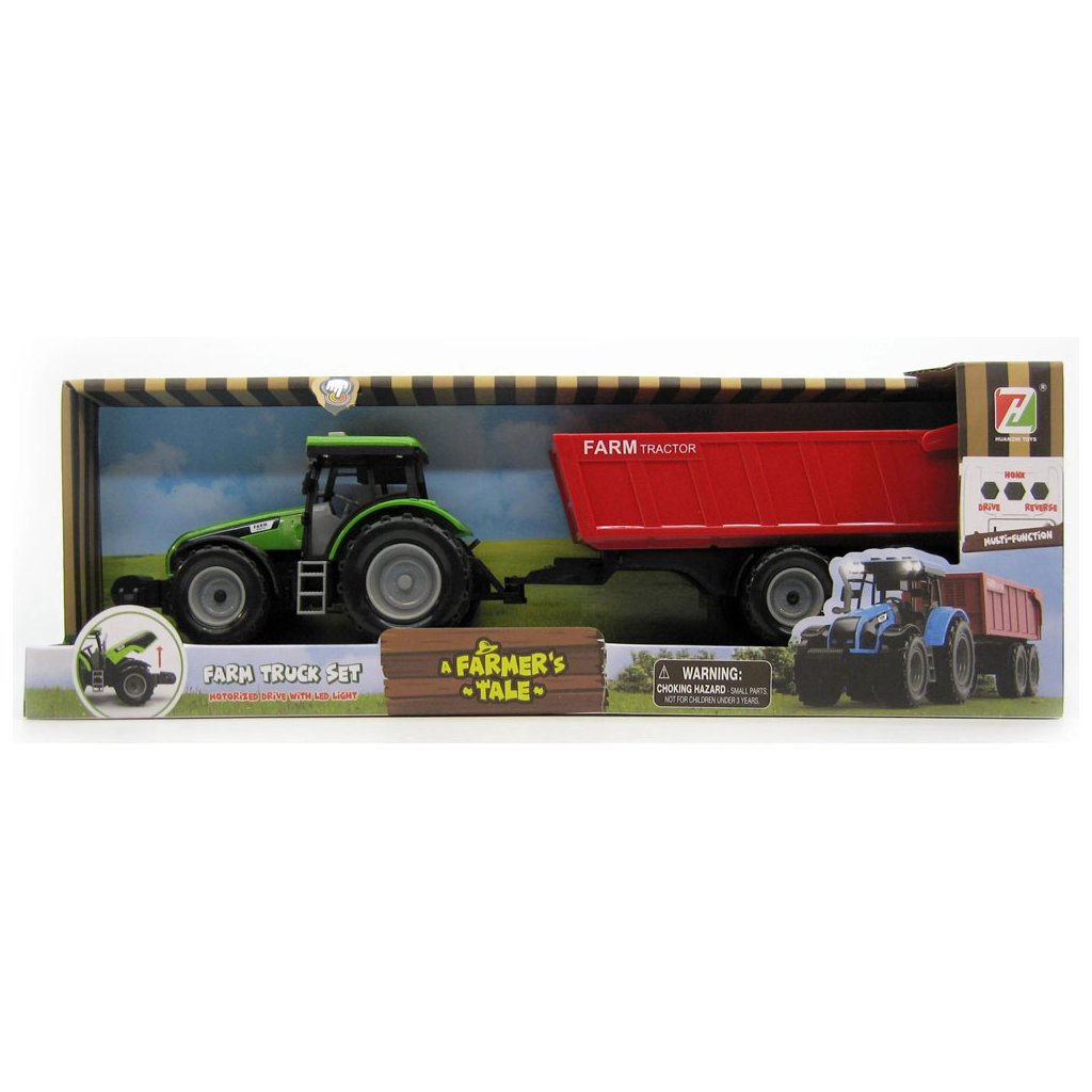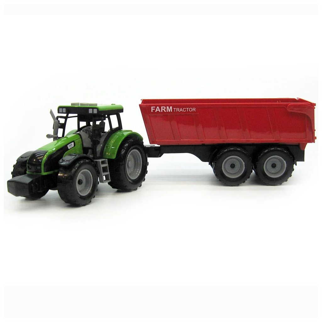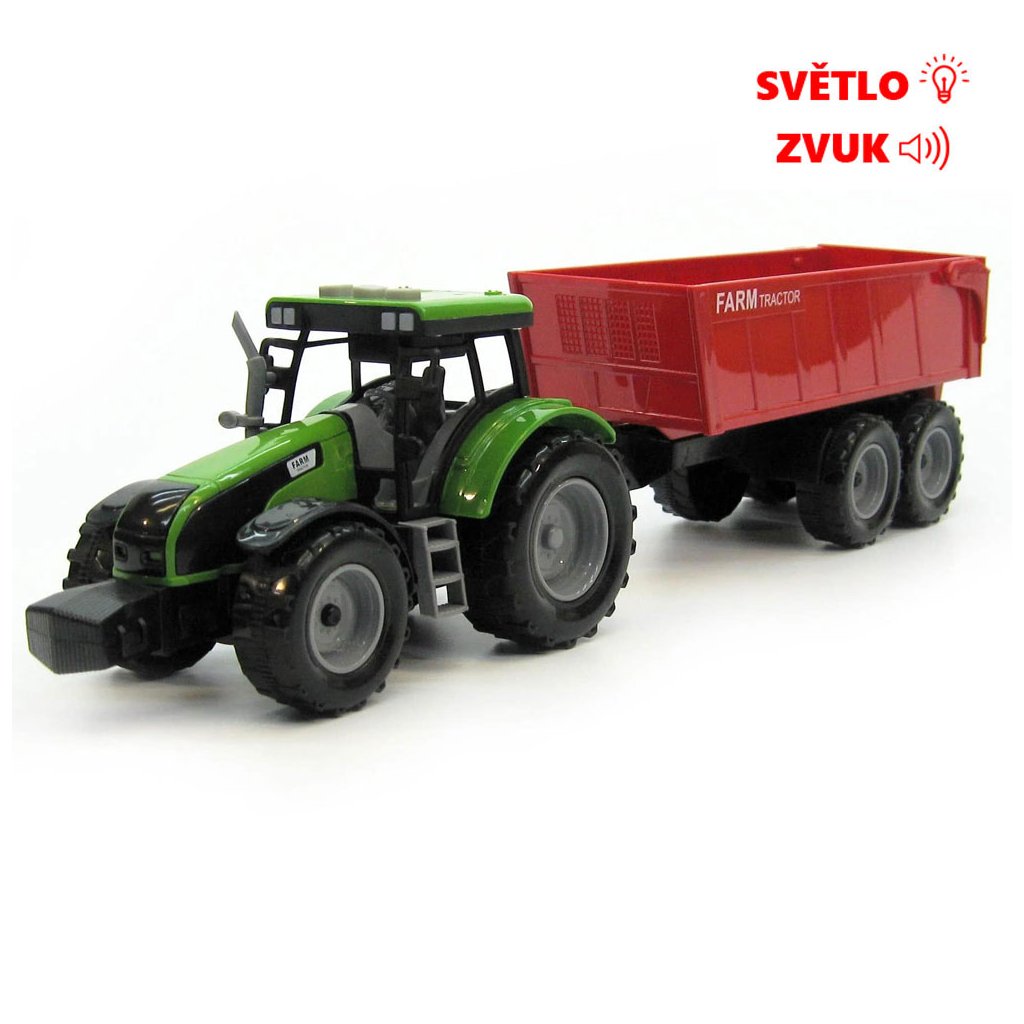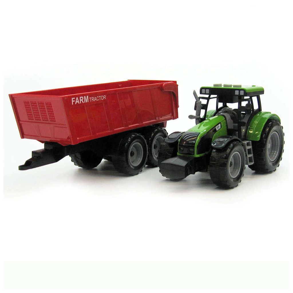 Kvalitní traktor potěší každého malého zemědělce. Traktor je vyroben z kvalitního plastu a nesmí chybět na žádné farmě. Traktor má přívěs, který může vyklápět náklad. Přívěs lze od traktoru odpojit. Traktor má světelné a zvukové efekty.