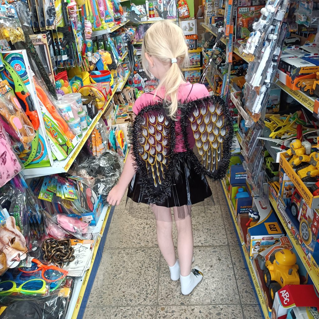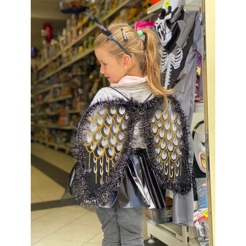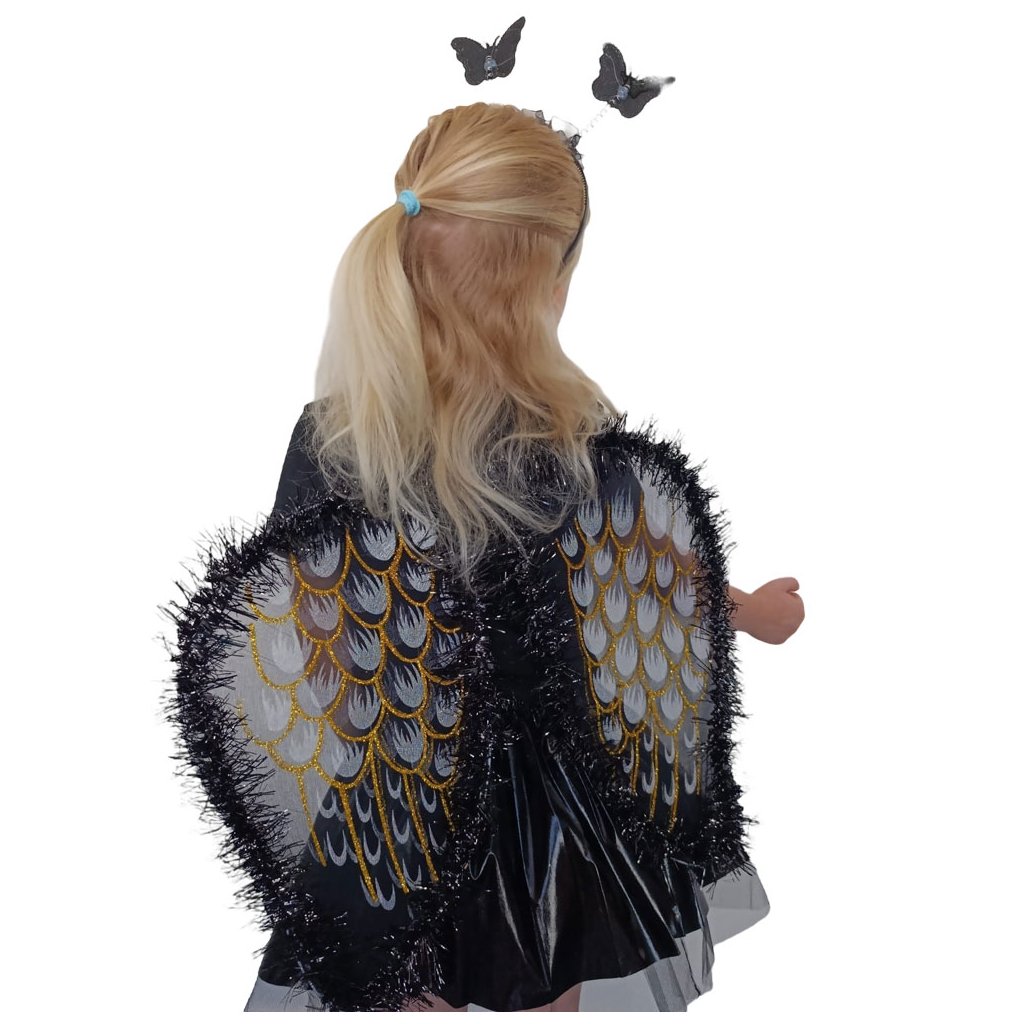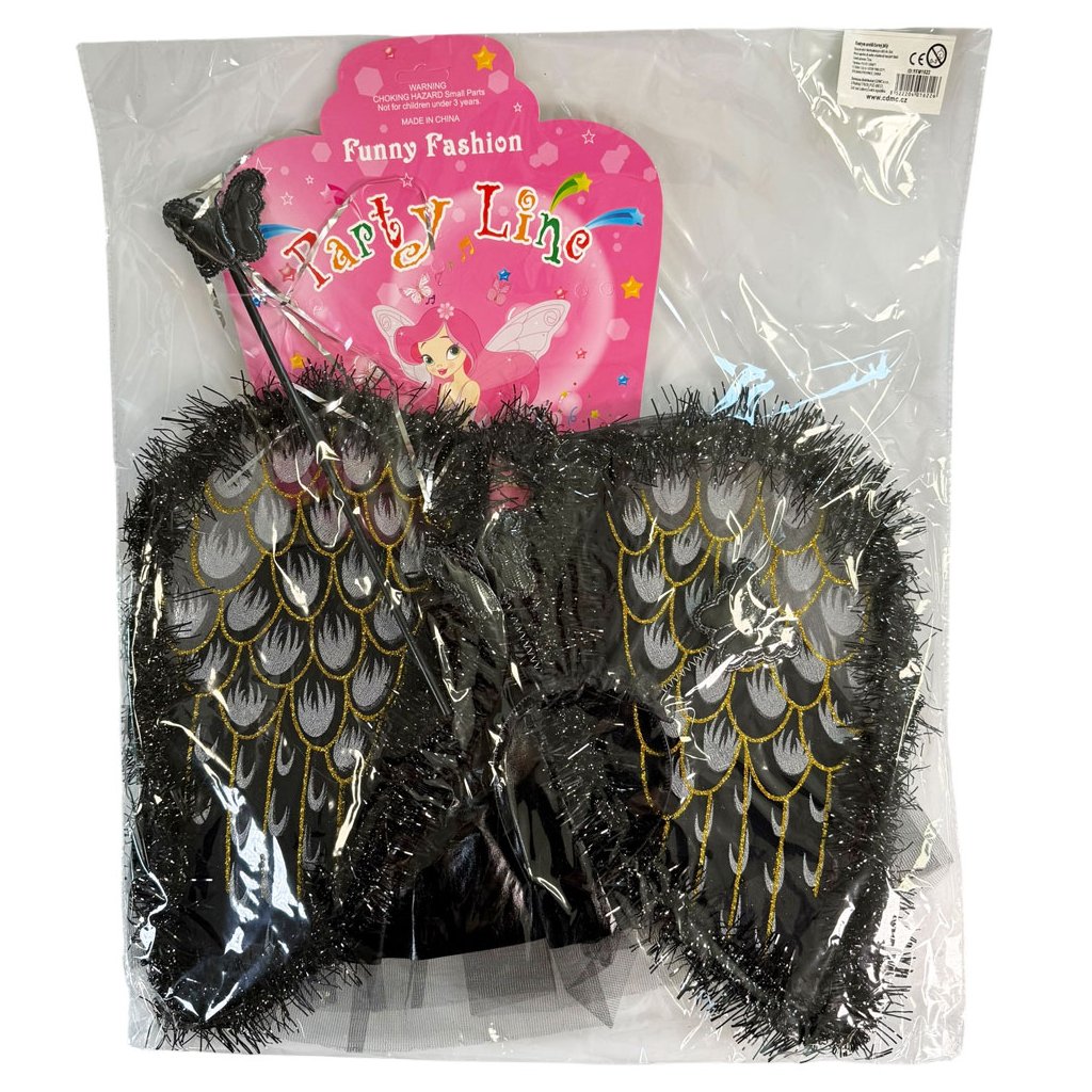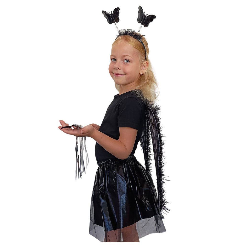 Karnevalový set obsahuje sukni, křídla, čelenku a hůlku. Délka sukně je 30 cm. Výška křídel 40 cm.