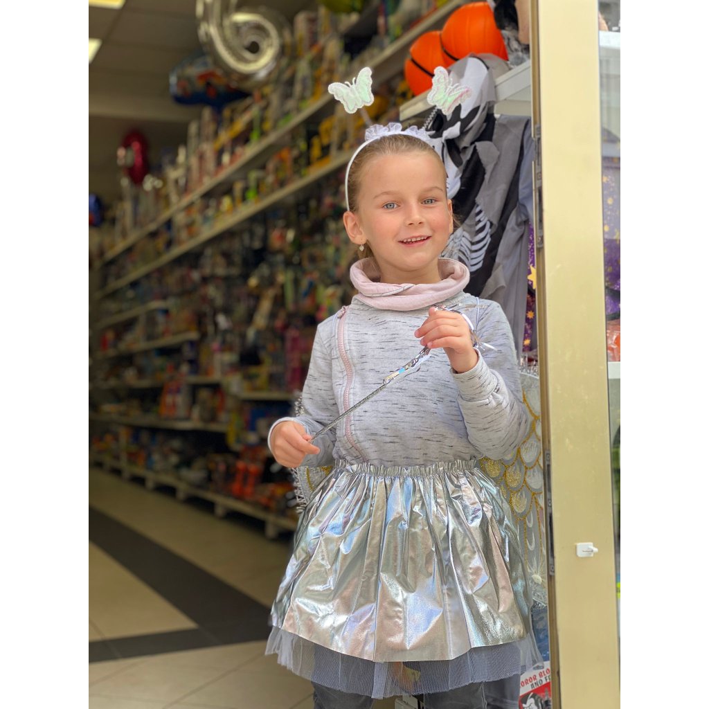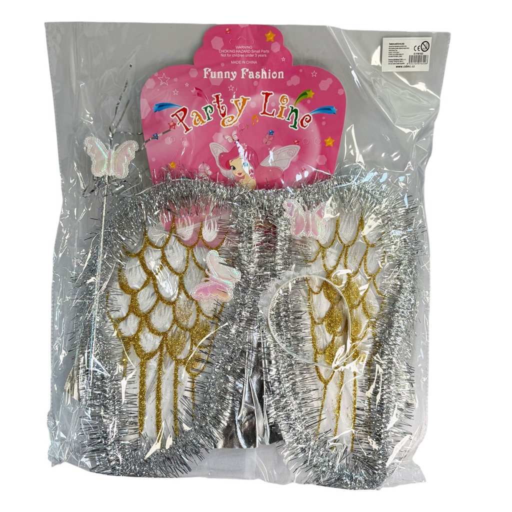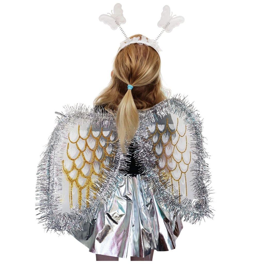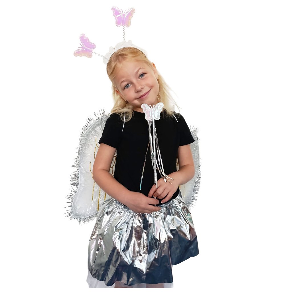 Karnevalový set obsahuje sukni, křídla, čelenku a hůlku. Délka sukně je 30 cm. Výška křídel 40 cm.