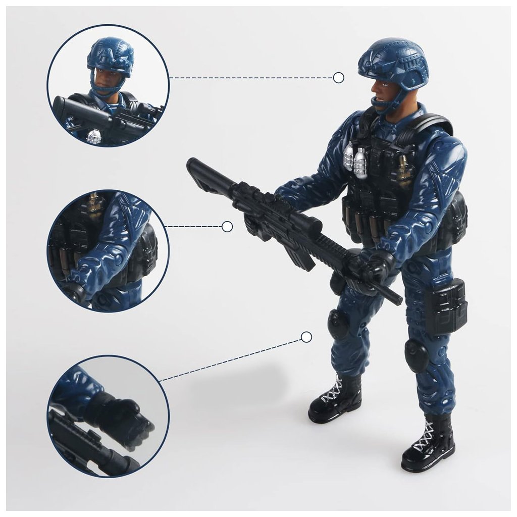 Parádní kloubová figurka policejní zásahové jednotky. Figurka má kloubové končetiny i otočnou hlavu. Díky nastavitelným končetinám s ohyby ve všech kloubech si můžete užít realistickou hru a nastavit figurku do různých pozic. Figurka je velká 18 centimetrů a v nabídce máme hned 4 druhy.