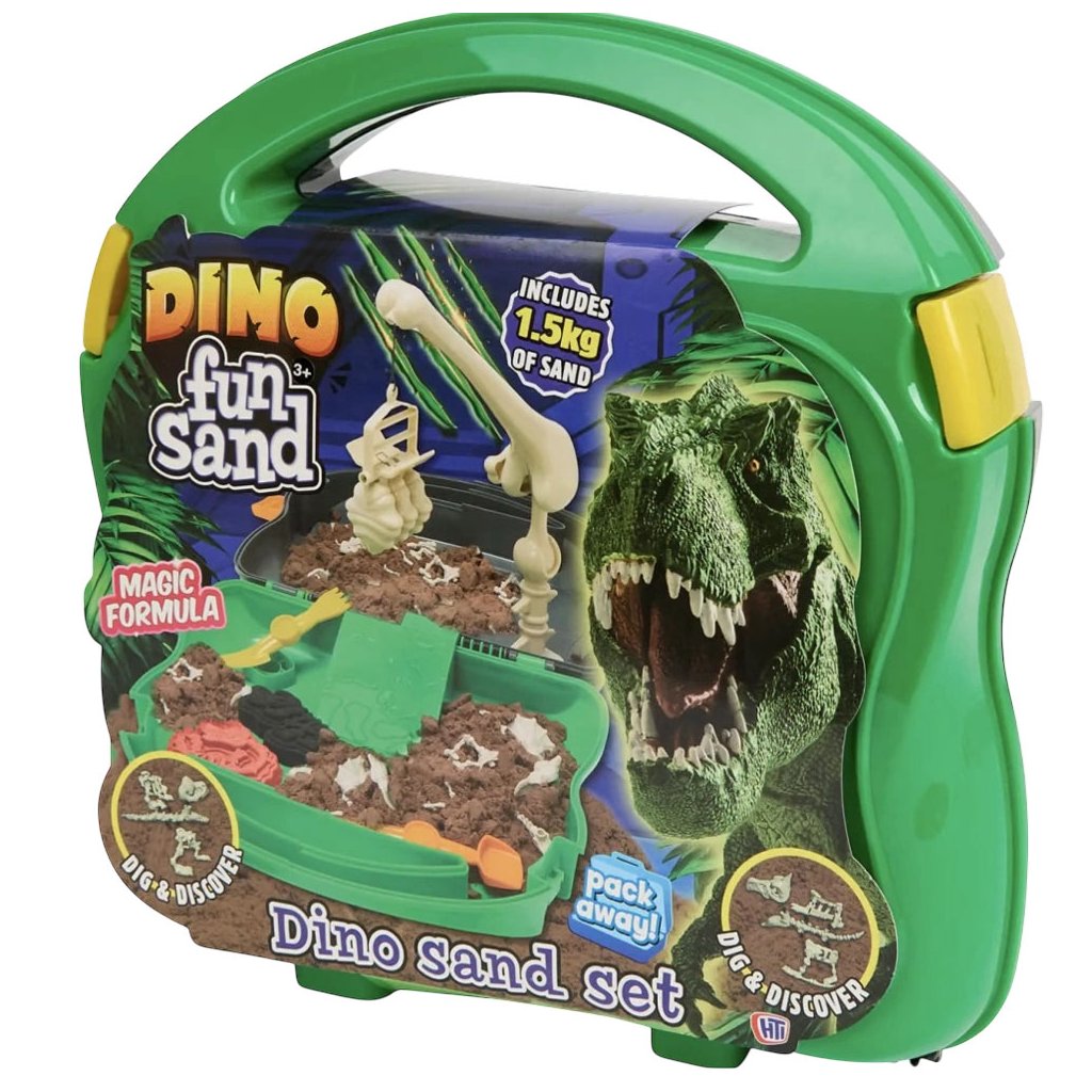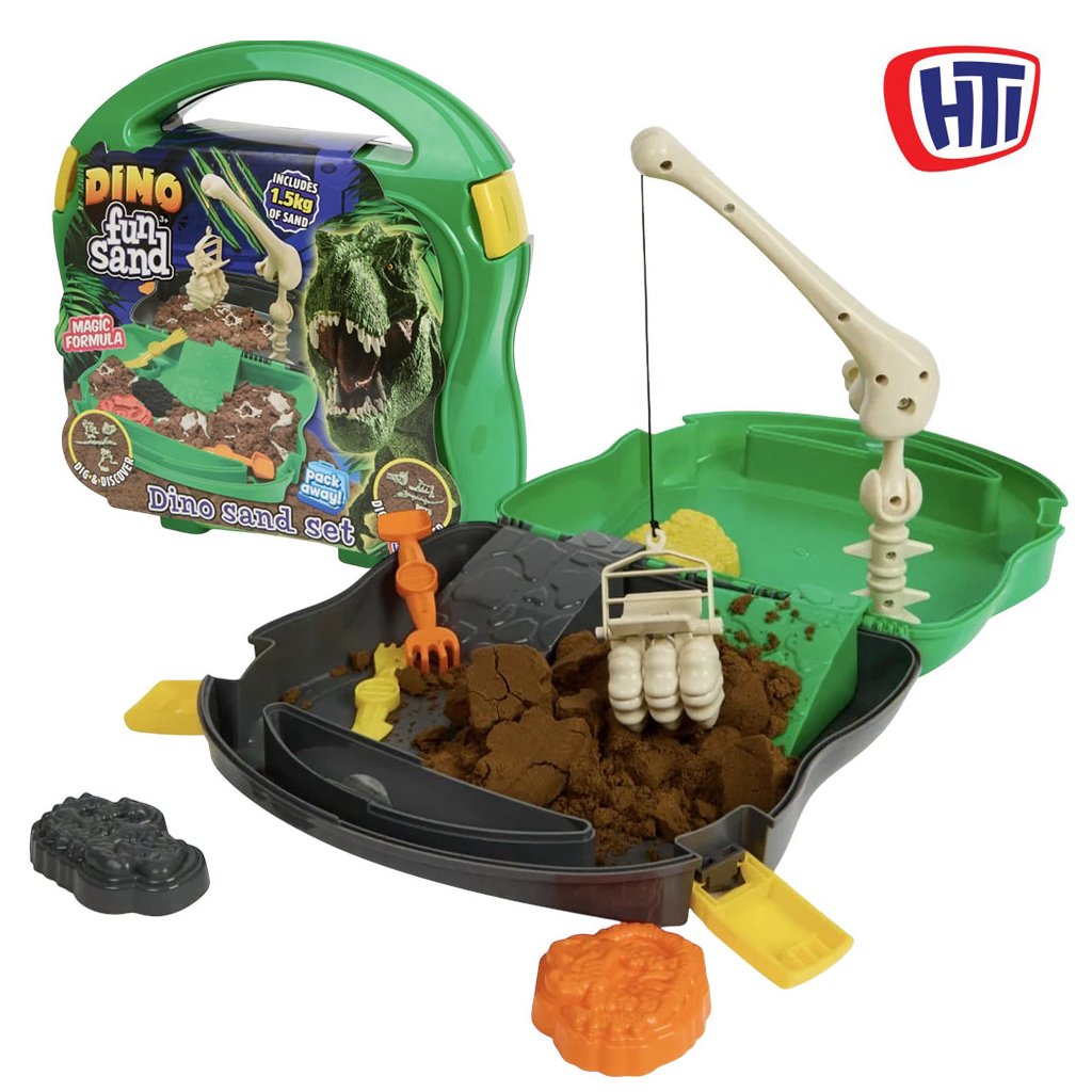 Dino Fun Sand Set je zábavná a kreativní sada, která spojuje hru s objevováním a tvořením. Ideální pro děti, které milují dinosaury, kreativní aktivity a objevování nových věcí. objev kostry dinosauru.