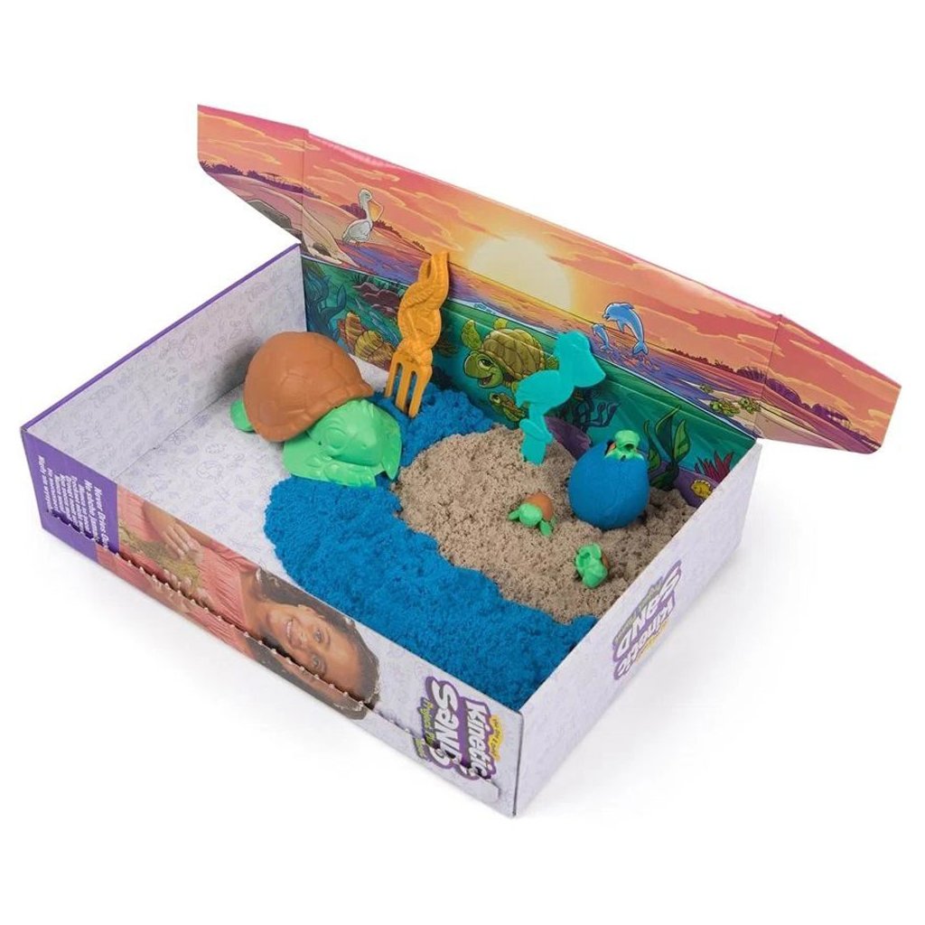Součástí je krabička, která ti slouží jako prostor ke hraní k vytváření vlastního pobřeží nebo stanoviště pro želvy. Balení obsahuje 396 gramů písku, formu želvy a další doplňky.