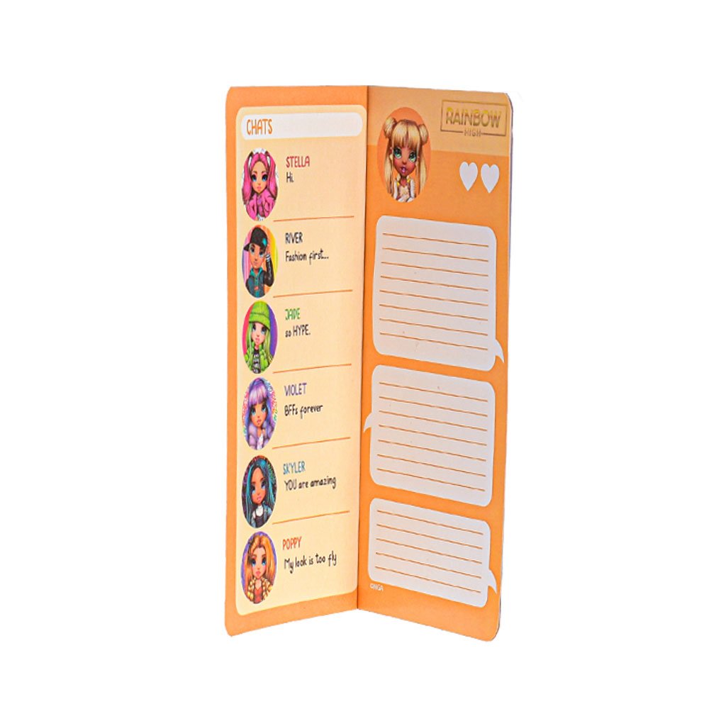 Rainbow High je střední škola, na níž se všichni studenti oblékají jako módní ikony a z jejich stylu jde každému hlava kolem! Rainbow High zápisník A6 je ideální pro psaní vlastních myšlenek, kreslení kreativních výtvorů a lepení samolepek. Součástí balení pero i nálepky. Vhodné pro děti od 3 let.