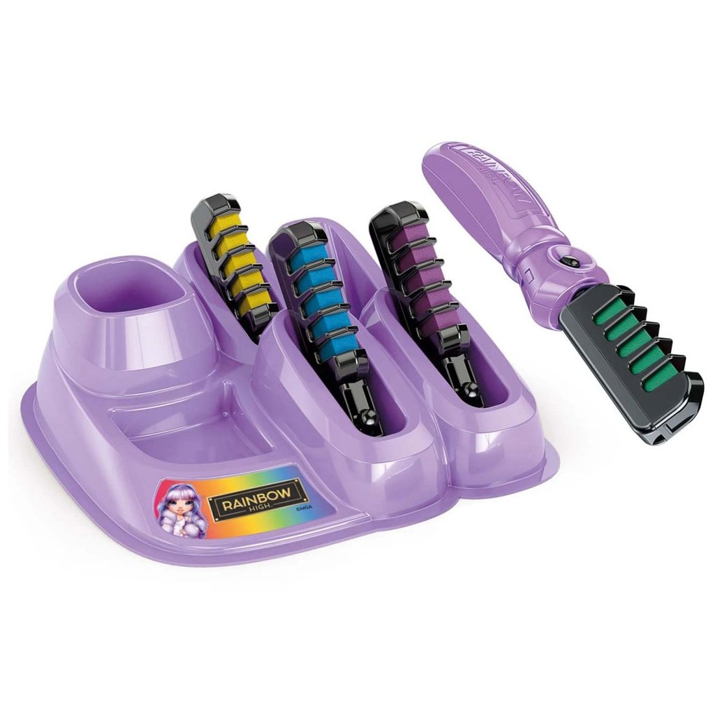 Fantastický kouzelný hřeben, který znovu vytvoří trendy a barevné vlasy jako postavičky Rainbow High! Jednoduše vložte tyčinku s barvivem do hřebenu a projeďte s ní část vlasů. Užijte si provedení každého zámku v jiné barvě!