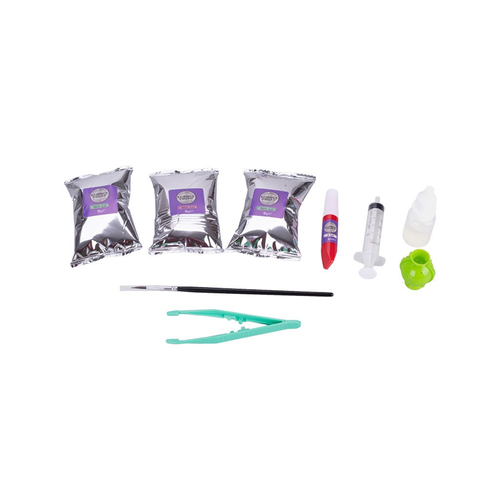 Vyrob si vlastní zombie hlavu, naplň ji hrozným slizem a krví a pak z ní vymodeluj děsivé poskakující oko. Vytvoř jizvy a hrozné rány a pak sleduj, jak s touto úžasnou vědeckou sadou září masožraví zombie!
