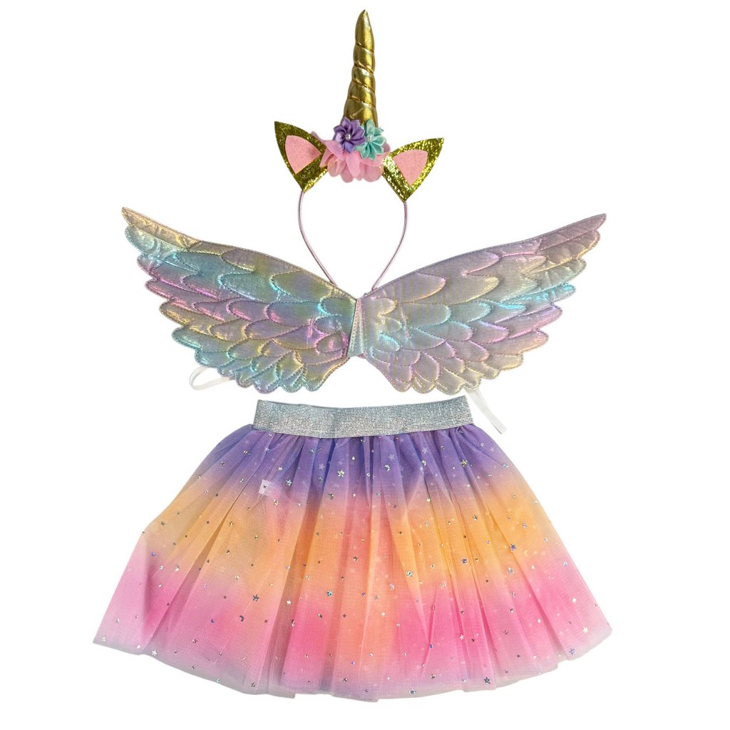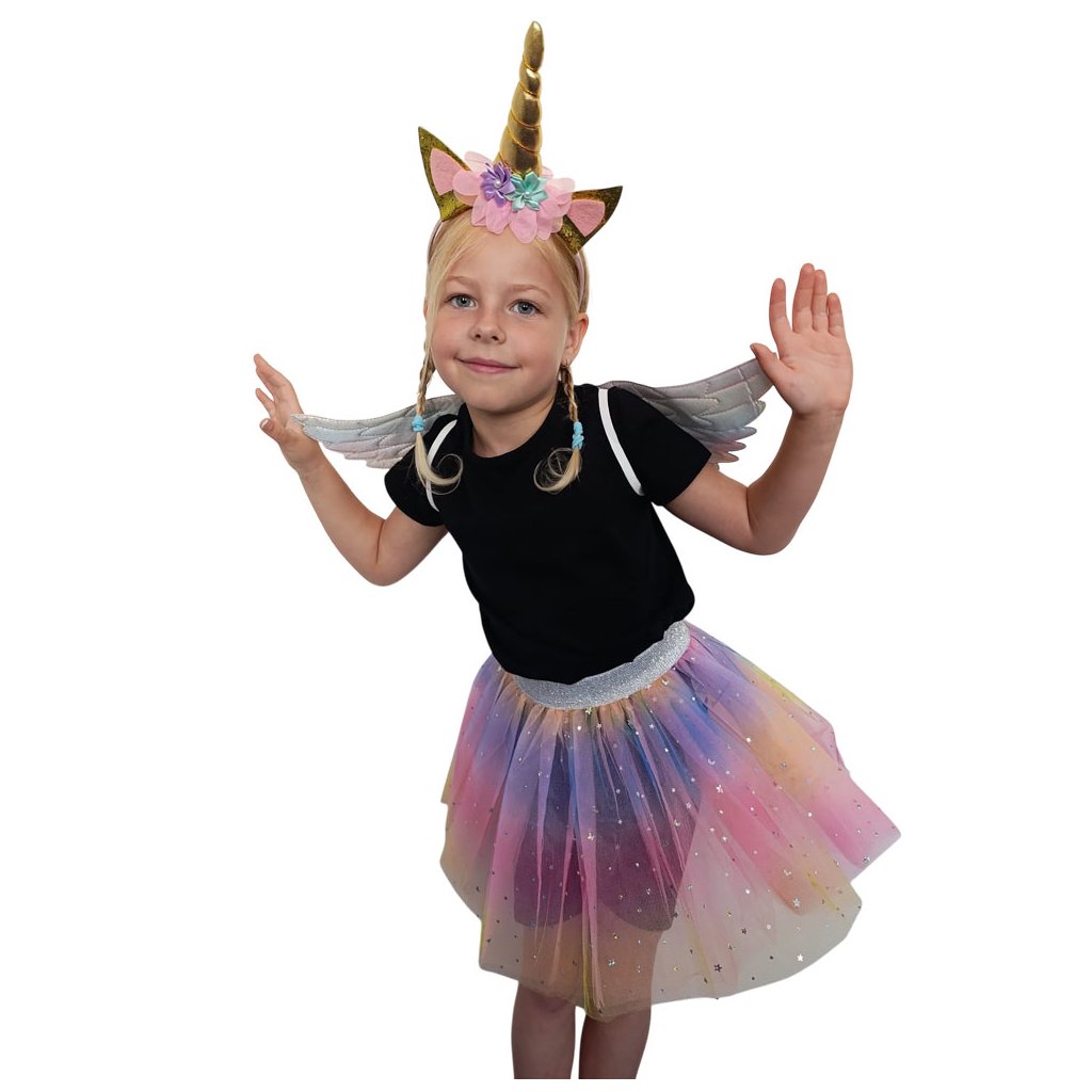 Karnevalový set obsahuje sukni, čelenku a křídla. Délka sukně je 30 cm.