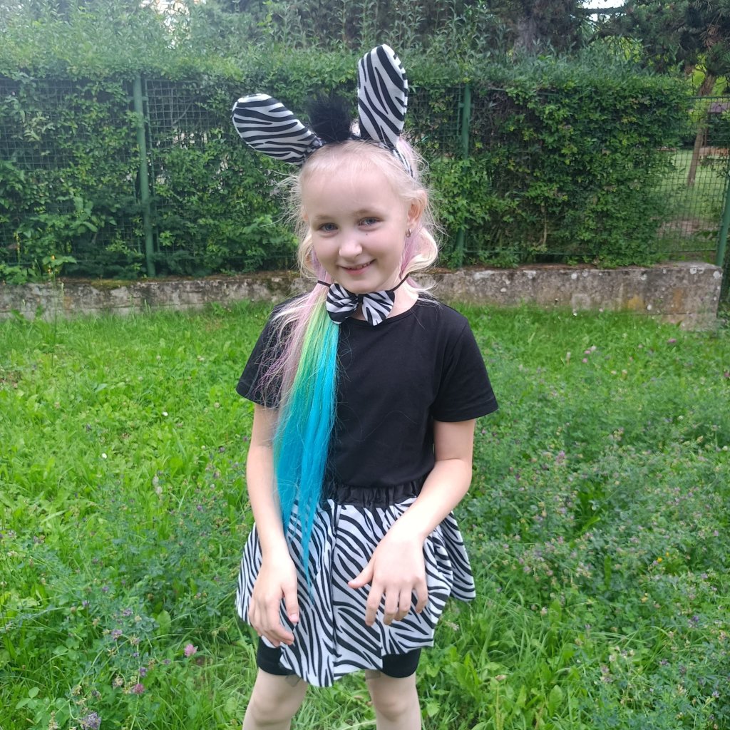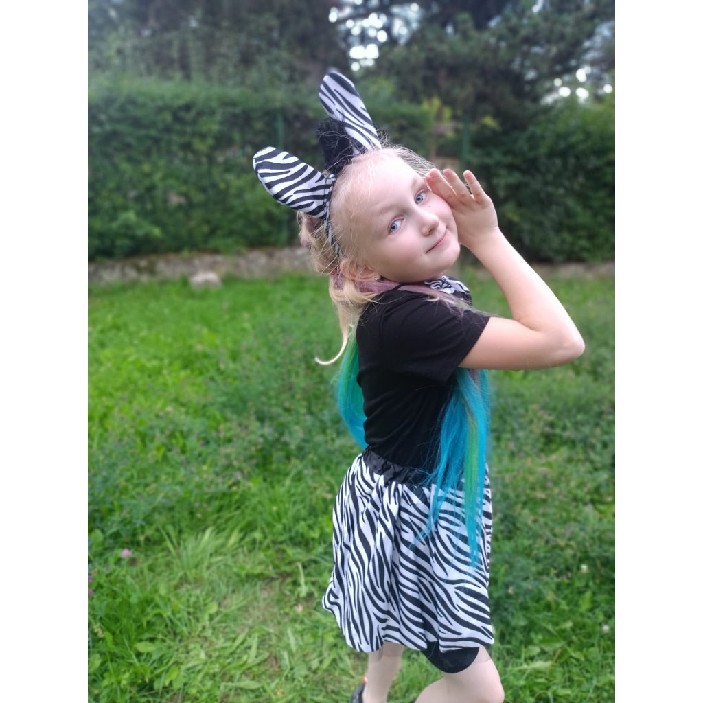 Karnevalový set obsahuje sukni, čelenku s ušima, motýlka a ocásek. Délka sukně je 30 cm.