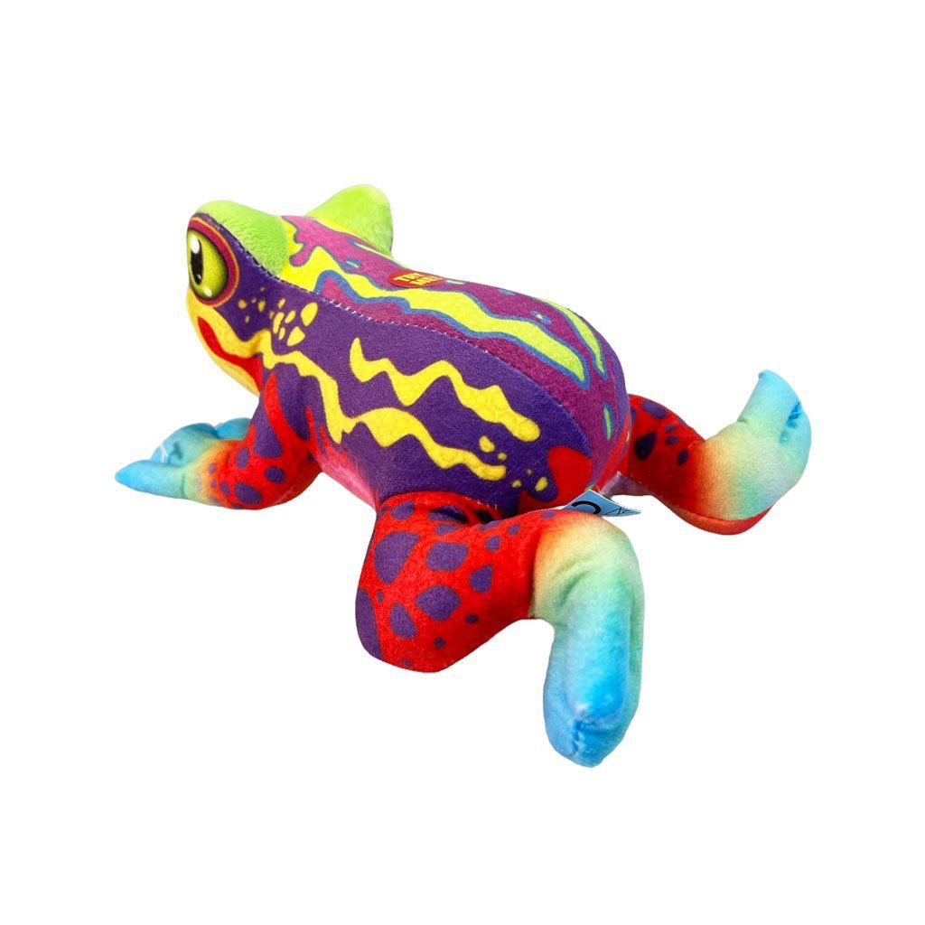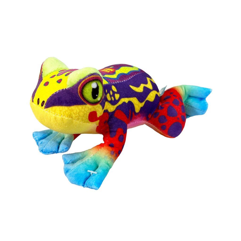 Plyšová žába o velikosti 20 cm je vybavena zvukovými efekty fungujícími na baterie. Produkt je dostupný ve 4 různých barevných provedeních. Měkký materiál a zábavné zvuky z ní dělají perfektního kamaráda pro hru i mazlení. Vhodná pro děti již od narození.